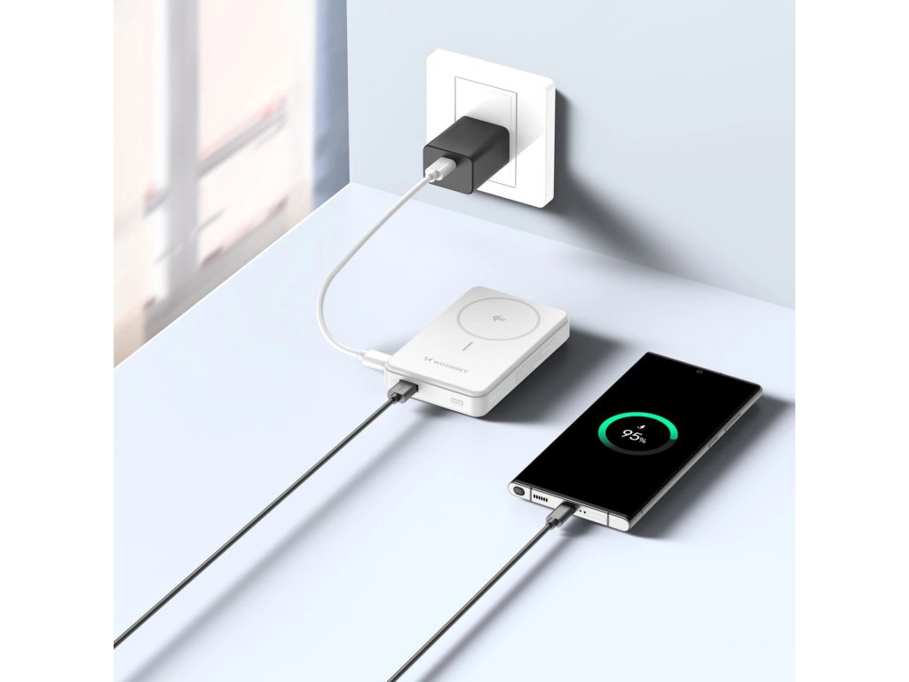 Potřebujete spolehlivý a kompaktní zdroj energie pro každodenní použití? Powerbanka Wozinsky WLWP-10KA0Y3WS je perfektním řešením pro každého, kdo si cení mobility a rychlého nabíjení. Tato elegantní bílá powerbanka s kapacitou 10 000 mAh je vybavena technologií Qi2.0, která umožňuje bezdrátové magnetické nabíjení. Podporuje rychlé nabíjení PD 20W a maximální výkon 22,5 W přes USB-A. Díky vestavěnému stojánku můžete telefon pohodlně používat během nabíjení a díky kompaktnímu designu se vejde do každé kapsy. Ochrana proti přebití a přehřátí zaručuje bezpečné a efektivní nabíjení vašich zařízení.