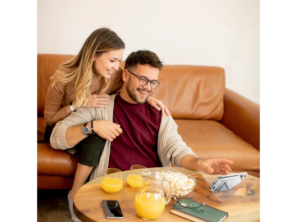 Vestavěný stojánek umožňuje umístit smartphone svisle i vodorovně, což je ideální pro sledování filmů nebo videohovory.