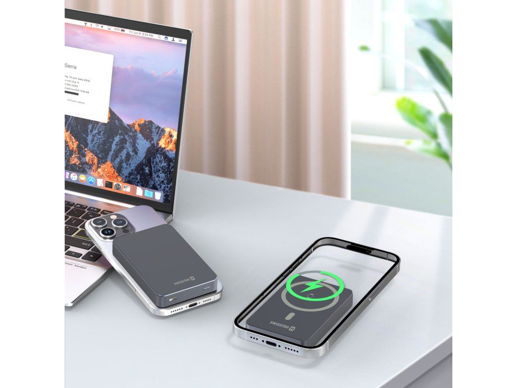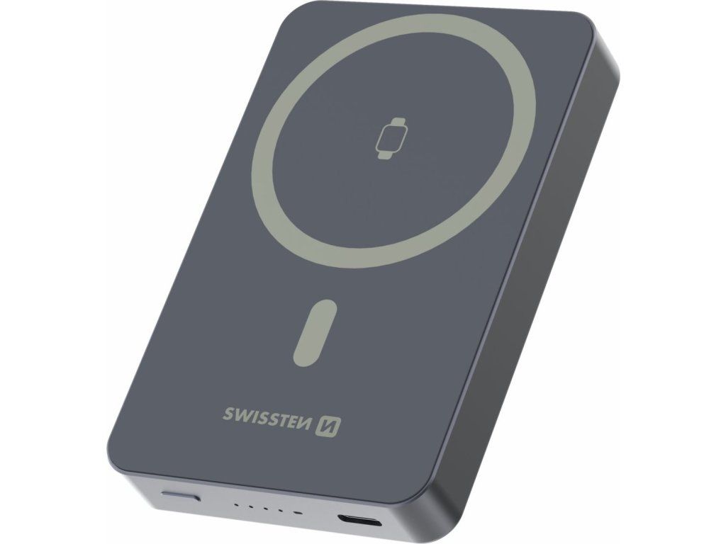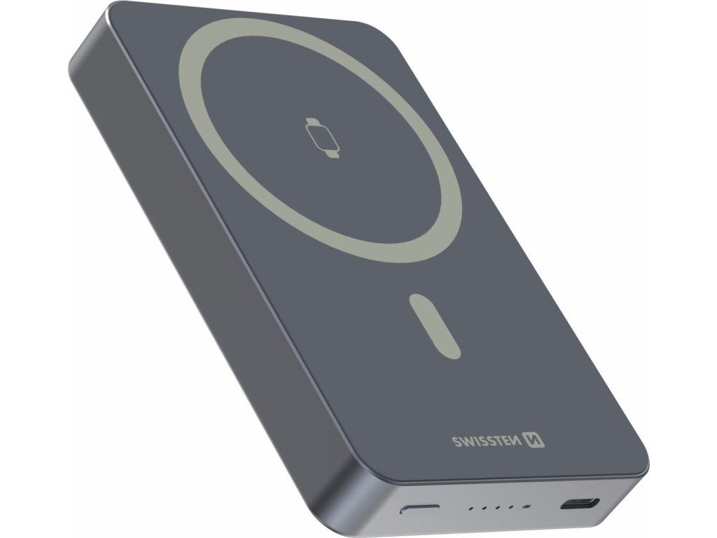 SWISSTEN POWER BANK FUSION 10000 mAh S NABÍJENÍM APPLE WATCH (kompatibilní s MagSafe) STŘÍBRNÁ