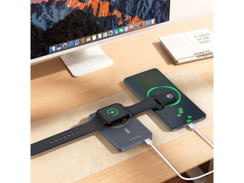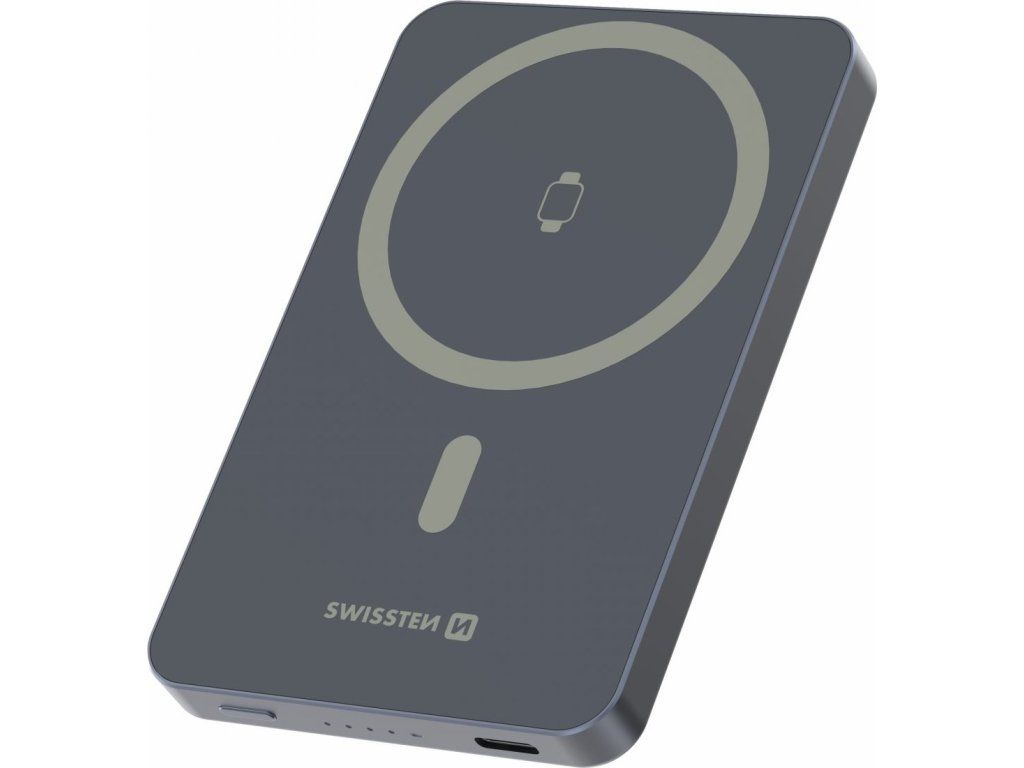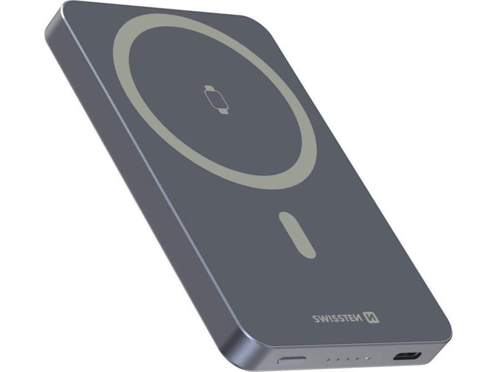 SWISSTEN POWER BANK FUSION 5000 mAh S NABÍJENÍM APPLE WATCH (kompatibilní s MagSafe) STŘÍBRNÁ