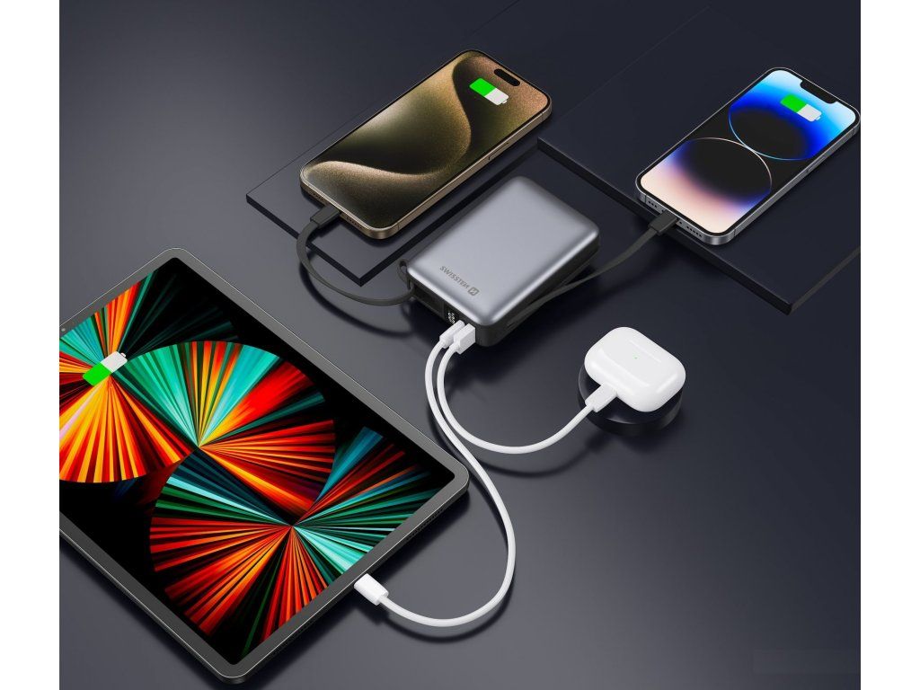 Potřebujete výkonnou a všestrannou powerbanku, která zvládne nabíjet více zařízení současně a eliminuje nutnost nosit další kabely? SWISSTEN POWER BANK 20,000 mAh ve vesmírně stříbrném provedení je skvělou volbou pro každodenní použití i delší cesty. Díky integrovaným kabelům USB-C a Lightning nabízí maximální pohodlí a spolehlivost.