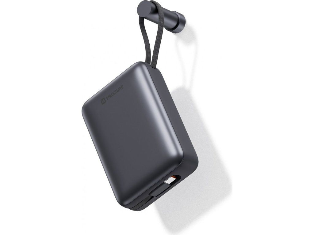 Power banka SWISSTEN s kapacitou 10.000 mAh, rychlým dobíjením, integrovanými kabely USB-C a lightning a konektorem USB-C. Typ baterie: Li-polymer. Baleno v blistru SWISSTEN.