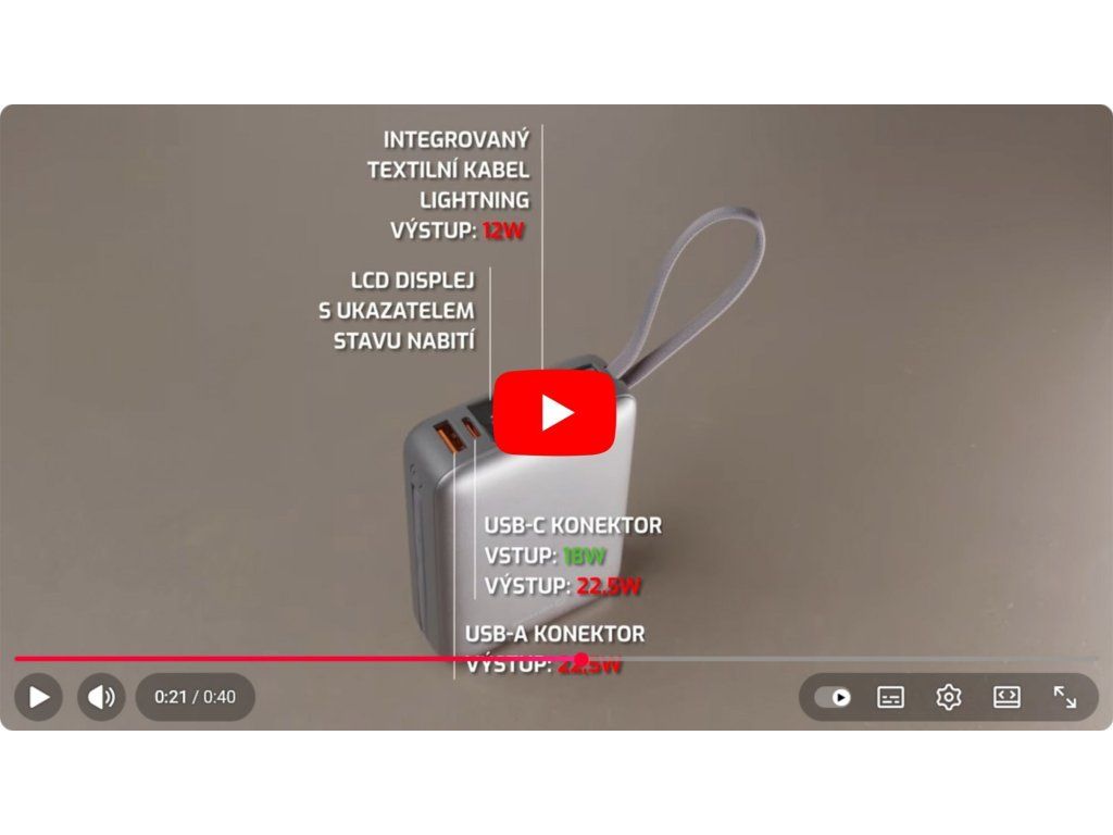 Tato powerbanka poskytuje výstupní výkon až 22,5 W přes USB-C port i integrovaný kabel, což umožňuje efektivní nabíjení smartphonů, tabletů a dalších zařízení. USB-A port s výkonem 22,5 W a Lightning kabel s výkonem 12 W zajistí kompatibilitu s širokou škálou zařízení, včetně iPhonů a zařízení s Androidem.