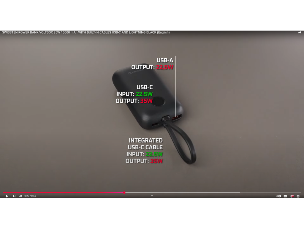 Hledáte kvalitní kompaktní power banku, díky které již nebudete muset řešit žádné kabely? Našli jste správně! SWISSTEN POWER BANK VOLTBOX 35W 10,000 mAh je výkonná powerbanka navržená pro moderní uživatele, kteří potřebují nabíjet více zařízení současně. Je vybavena integrovanými kabely USB-C a Lightning, což eliminuje potřebu nosit samostatné kabely.