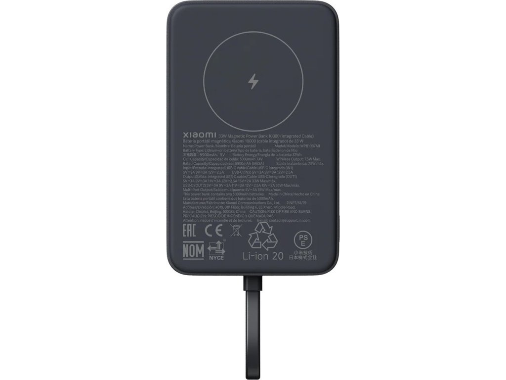 Magnetická síla na cestách Xiaomi Magnetická Powerbanka 33W 10000mAh je dokonalým společníkem pro každého, kdo potřebuje spolehlivou energii kdykoliv a kdekoliv. Díky preciznímu magnetickému uchycení nabízí pohodlné bezdrátové nabíjení bez zbytečných kabelů. Stačí přiložit a nabíjení běží samo – rychle, stabilně a bezpečně. Magnetické uchycení je pevné a stabilní, takže telefon drží bezpečně i během používání. Výkon, který nezklame Powerbanka je připravena na všechny situace. Umožňuje 7,5W magnetické bezdrátové nabíjení i 33W rychlé kabelové nabíjení, které vaše zařízení dobije v rekordním čase. Navíc podporuje 30W rychlé samonabíjení, takže powerbanku doplníte na 100 % už za přibližně 140 minut. Zvládne také nabíjet až tři zařízení současně – ideální při cestování, práci i každodenním používání. Vysoká kapacita a spolehlivost Uvnitř se ukrývají dvě 5000mAh baterie s celkovou kapacitou 10 000mAh. Tato rezerva energie vám bez problémů zajistí dostatek energie pro vaše zařízení, takže se na tuto powerbanku můžete spolehnout i během dlouhého dne mimo domov. Powerbanka si navíc zachovává stabilní výkon i při souběžném nabíjení více zařízení. Díky kvalitním článkům a chytré správě napájení vám poskytne jistotu, že energii budeš mít vždy po ruce. Styl, který si zamilujete Prémiové zpracování s matným povrchem příjemným na dotyk a měkkou protiskluzovou silikonovou plochou pro bezdrátové nabíjení zajišťuje pohodlné používání. Plochý design a kvalitní materiály dělají z powerbanky nejen praktický, ale i stylový doplněk. Je lehká, skladná a pohodlně se drží i při připojení k mobilu. Díky čtyřem jasným LED diodám máš vždy přehled o aktuálním stavu baterie. Ideální společník na cesty, do práce i do kapsy. Bezpečí na prvním místě Inteligentní regulace teploty nonstop sleduje podmínky a automaticky upravuje výkon, aby chránila vaše zařízení i powerbanku. Celkem devět vrstev bezpečnostní ochrany se stará o prevenci přehřátí, přepětí, přebití i zkratu. Klíčové vlastnosti Kapacita: 10 000mAh Maximální kabelový výstup: 33W (USB-C / integrovaný USB-C kabel) Magnetické bezdrátové nabíjení: 7,5W Rychlé samonabíjení: 30W (cca 140 min) Nabíjení až 3 zařízení současně Rozměry: 109 × 68,5 × 19,8 mm Hmotnost: 238 g Vstupy: USB-C integrovaný kabel – 5V/3A, 9V/3A, 12V/2,5A USB-C – 5V/3A, 9V/3A, 12V/2,5A Výstupy: Kombinovaný -5V/3A (15W MAX) USB-C (OUT1/OUT2) – až 33W