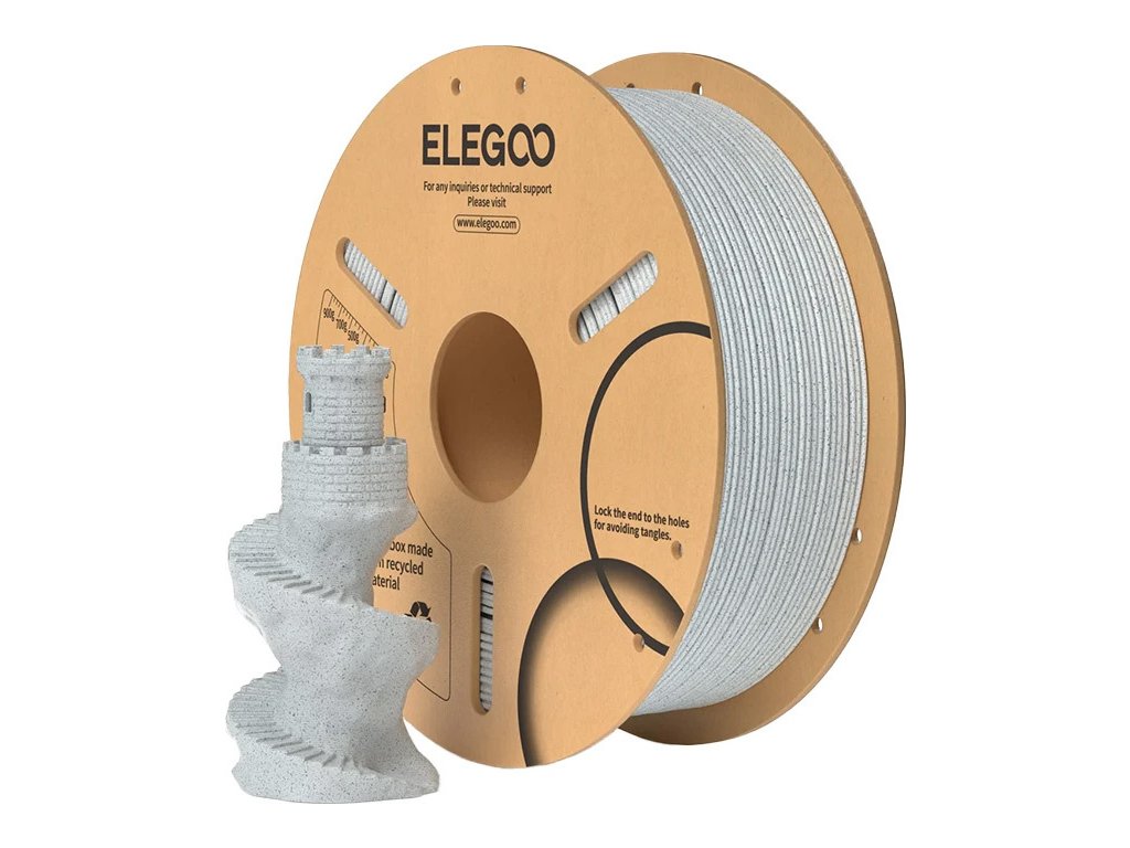 Filament v barvě mramoru od společnosti ELEGOO vám umožní vytvářet jedinečné modely s realistickým kamenným povrchem. Díky přísadám, které dodávají povrchu charakteristický mramorový efekt, získávají výtisky estetický vzhled, který je ideální pro dekorace, figurky nebo architektonické makety. Materiál je založen na PLA (polylaktidu - biologicky odbouratelném plastu na rostlinné bázi), takže je šetrný k životnímu prostředí. Na cívce je 1 kg filamentu, což stačí na mnoho středních a velkých výtisků.