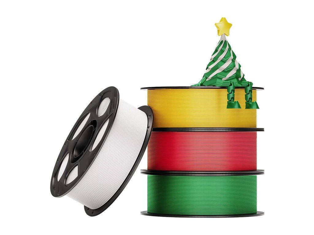 Sada vánočních filamentů Anycubic vám umožní vytvářet kreativní projekty nejen na svátky. Materiál nabízí intenzivní, živé barvy a hedvábný lesk, takže je ideální pro tisk vánočních ozdob, dekorací a dárků. Vysoká kvalita materiálu pomáhá vytvářet výtisky, které okamžitě upoutají pozornost, a možnost ovládat vzhled modelů změnou parametrů tisku vám dává plnou svobodu při utváření výsledného efektu. V sadě najdete čtyři cívky hedvábného filamentu PLA ve slavnostních barvách: bílé, červené, zelené a zlaté. Výrobek je kompatibilní s většinou 3D tiskáren FDM na trhu.