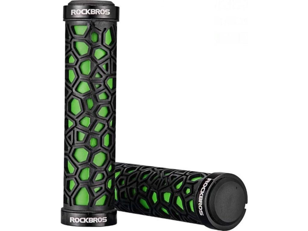 Gripy na kolo Rockbros GMBT1001GN ze silikonové pěny - zelené Vyzkoušejte spolehlivé a pohodlné cyklistické gripy Rockbros GMBT1001GN.