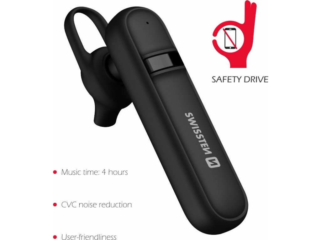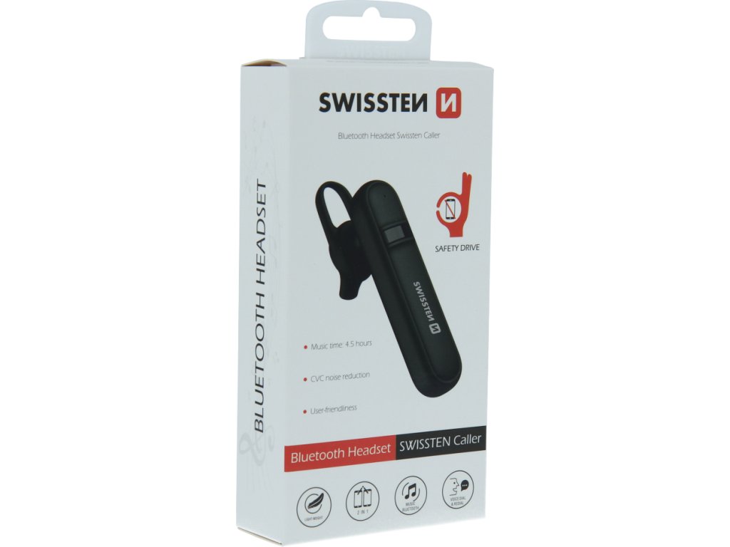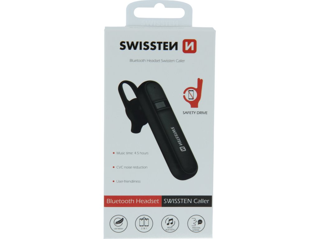 Lehký bluetooth headset SWISSTEN CALLER, s příjemným ergonomickým designem pro bezpečné telefonování. Baleno v blistru SWISSTEN.
