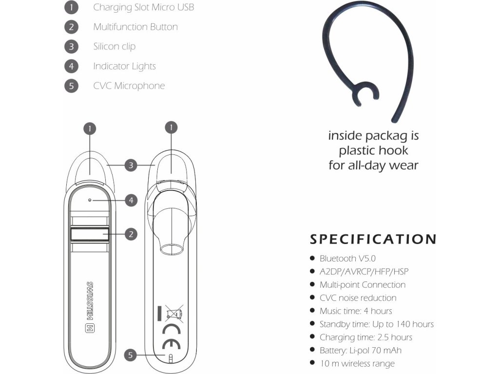 Bluetooth headset Swissten Ultra Light UL-9 je vhodný pro všechny, kteří přeferují uživatelskou přívětivost a každodenní pohodlí. Baleno v blistru Swissten.