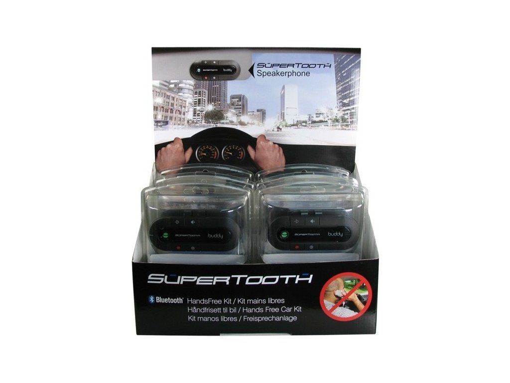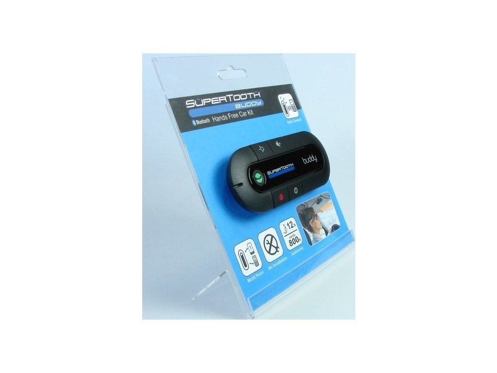 Nové přenosné Bluetooth handsfree Supertooth Buddy je ideálním společníkem pro pohodlné a bezpečné telefonování na cestách bez pokut. Buddy zaujme svou velikostí (pouze 129 x 49 x 14,6 mm), jako ostatní handsfree Supertooth se umísťuje na sluneční clonu v interiéru vozidla - toto řešení skýtá mnoho výhod. Necloní při výhledu z vozidla, zároveň je blízko hlavy řidiče pro perfektní kvalitu hovoru. Handsfree podporuje funkci Multipoint, umí být zároveň spojen se dvěma telefony najednou. Supertooth Buddy podporuje funkce: DSP pro potlačení okolního šumu, plně duplexní režim, AutoConnect - automatické spojení s telefonem, AutoPairing - funkce automatického párování a plná kompatibilita se všemi telefony vybavené Bluetooth. To vše v kompaktním celku s prodlouženou výdrží baterie (20 hodin hovoru) v elegantním kompaktním designu. Díky novému vylepšenému mikrofonu zajišťuje BUDDY čistý zvuk bez ozvěn. Tradice značky Supertooth Vám zajistí klidné telefonování na cestách.