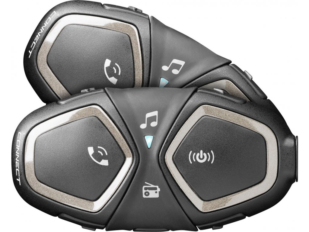 Bluetooth handsfree pro motorkáře Interphone CONNECT slouží pro komunikaci dvou uživatelů na vzdálenost až 300m Představuje ideální kombinaci ergonomického designu, perfektní kvality zvuku a jednoduchého intuitivního ovládání. Set je ideální pro všechny, kteří chtějí být neustále ve spojení se svým spolujezdcem a sdílet s ním hudbu i různé jiné zážitky. Interphone CONNECT je kompatibilní se všemi smartphony s technologií Bluetooth, umožní vám přijímat telefonní hovory nebo poslouchat instrukce z GPS navigace. Set je vhodný pro instalaci pro všechny typy motorkářských helem, instalace je rychlá a jednoduchá. Se svojí výdrží až 15 hodin zvládne Interphone CONNECT i dlouhé cesty na jedno nabití. Samozřejmostí je odolnost vůči dešti i jiným vlivům počasí. O veškeré ovládání se postarají tlačítka umístěná přímo na Bluetooth jednotce.