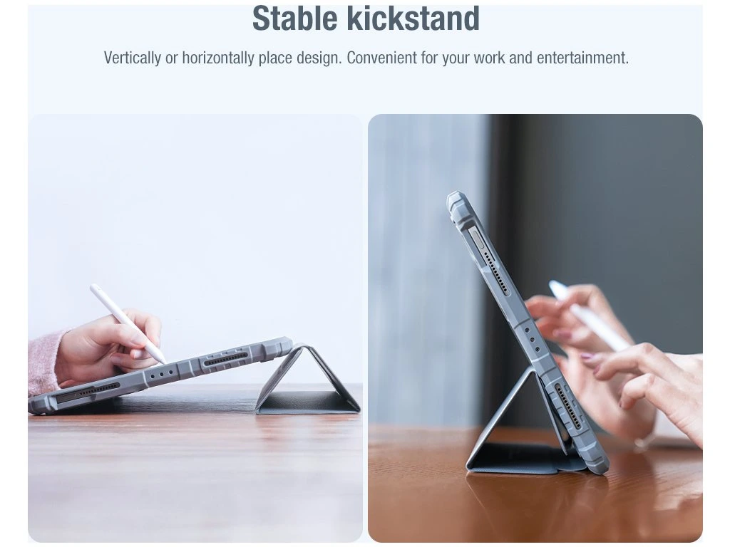 Nillkin Bumper Combo Keyboard Case je víceúčelový ochranný kryt tabletu s podsvícenou klávesnicí, slotem pro Apple Pencil s automatickým nabíjením a plynule nastavitelným úhlem tabletu.