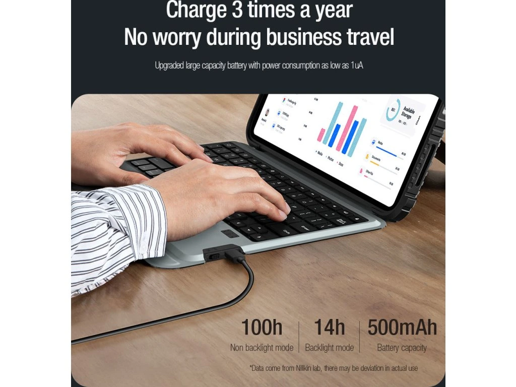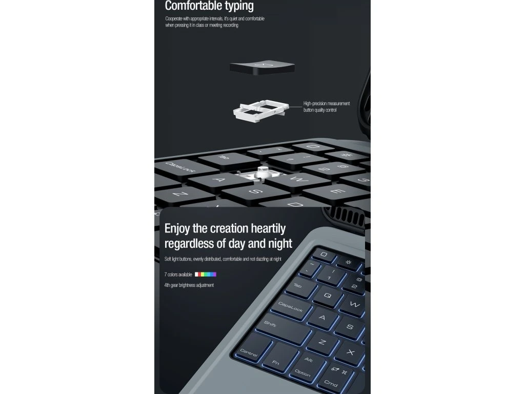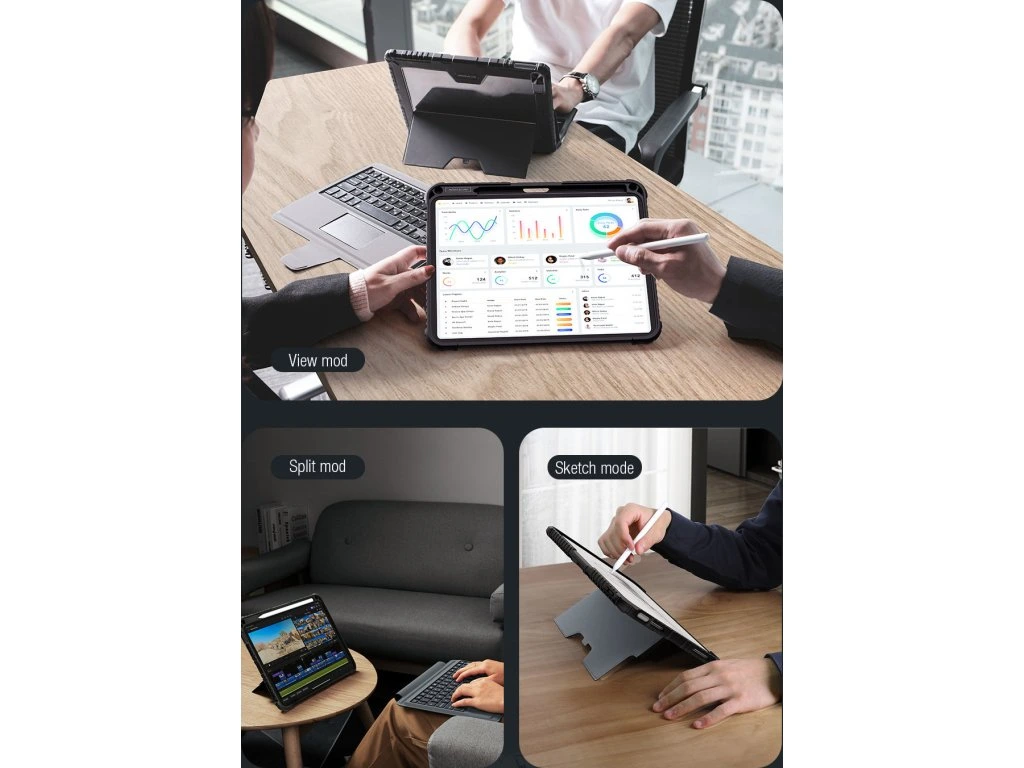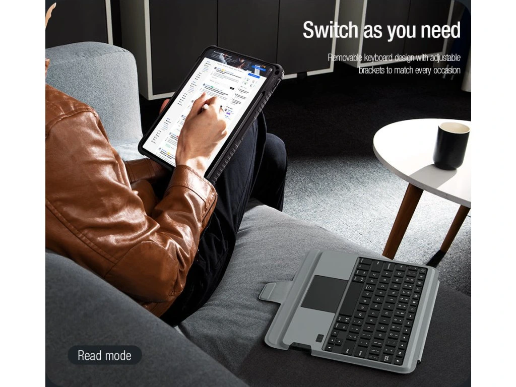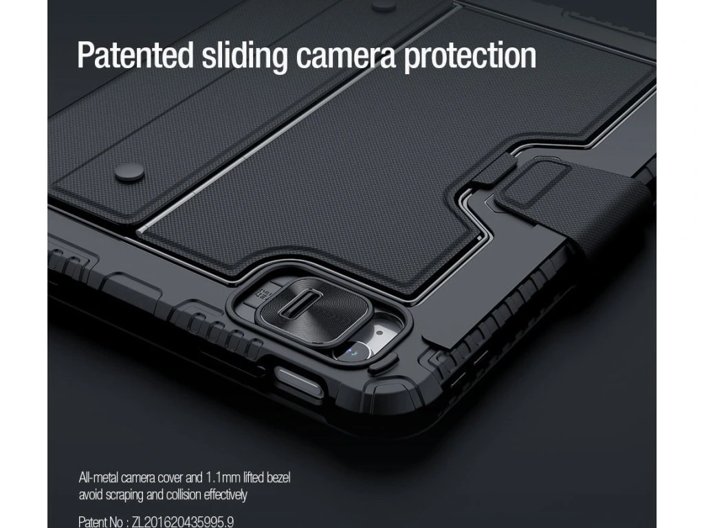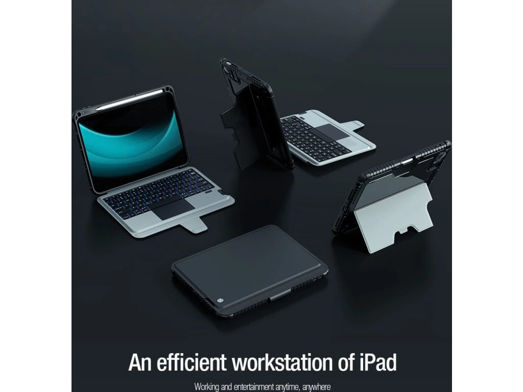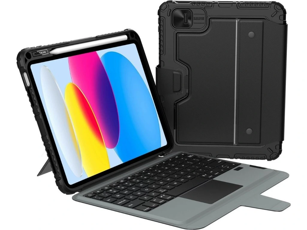 Nillkin Bumper Link Keyboard Case je víceúčelový ochranný kryt tabletu s odnímatelnou podsvícenou klávesnicí, slotem pro Apple Pencil a plynule nastavitelným úhlem tabletu.