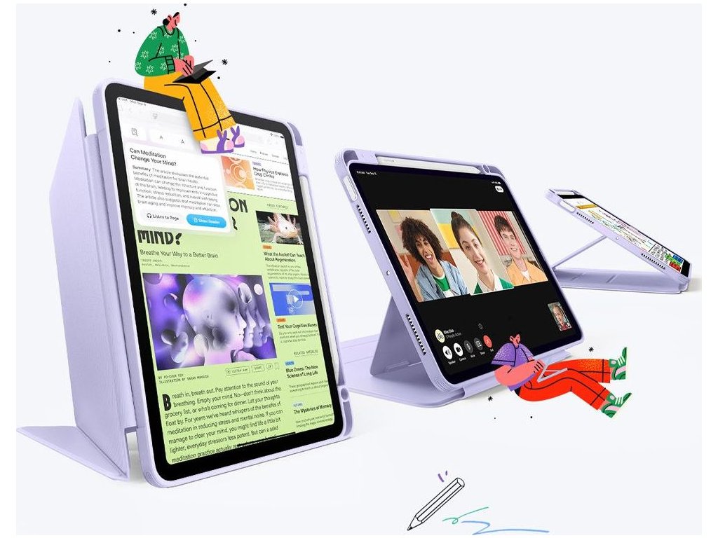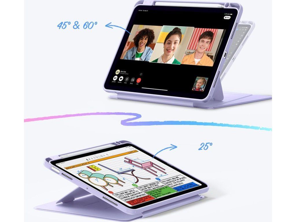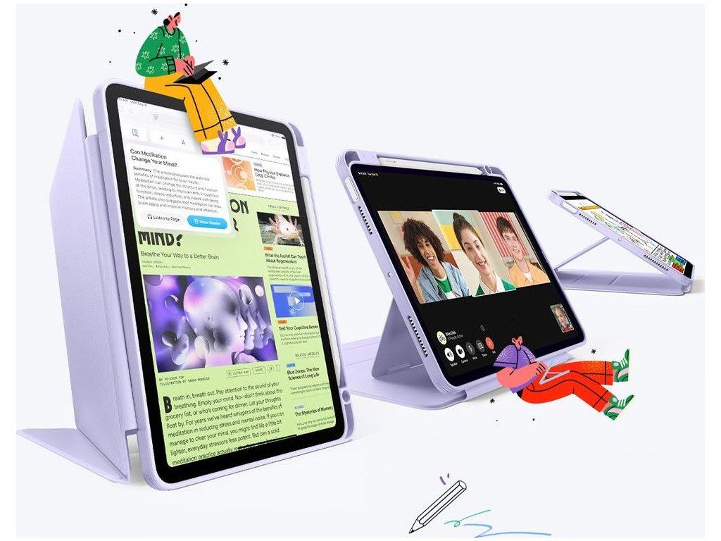 Jednou z největších výhod pouzdra ESR Flip Case je jeho univerzálnost – pouzdro lze snadno přeměnit na stojánek s nastavitelným úhlem sklonu, ideální pro psaní, sledování filmů, videokonference nebo kreslení. Vestavěný držák Apple Pencil vám umožní nejen jeho uložení, ale také podporuje magnetické nabíjení, takže váš stylus je vždy připraven k akci.