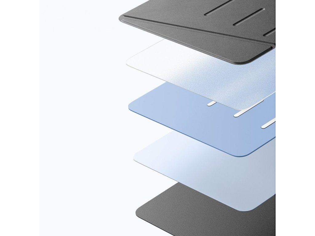Pouzdro se vyznačuje lehkým, tenkým designem, který nezvyšuje objem a zároveň poskytuje pevnou ochranu zadní straně a bokům iPadu. Chlopeň bezpečně přilne k obrazovce a chrání ji před poškrábáním a nečistotami a funkce automatického spánku a probuzení prodlužuje životnost baterie a činí používání iPadu ještě intuitivnějším.