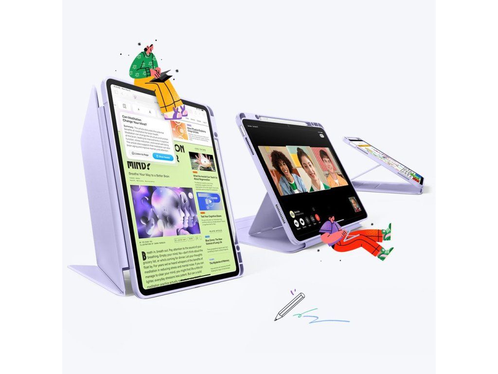 Jednou z největších výhod pouzdra ESR Flip Case je jeho univerzálnost – pouzdro snadno přeměníte na stojánek s nastavitelným úhlem sklonu, ideální pro psaní, sledování filmů, videokonference nebo kreslení. Vestavěný držák Apple Pencil nejenže uloží vaši Apple Pencil, ale také podporuje magnetické nabíjení, takže váš stylus je vždy připraven k akci.