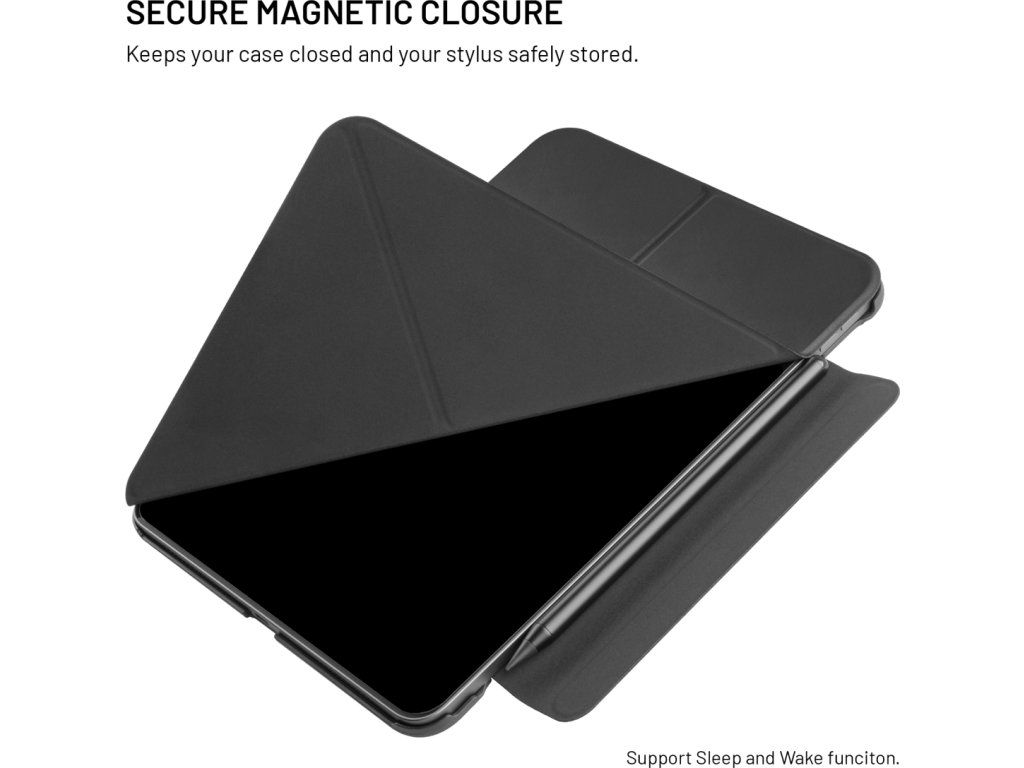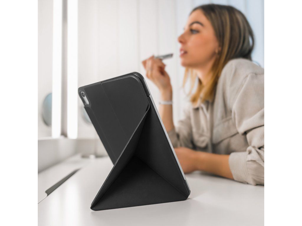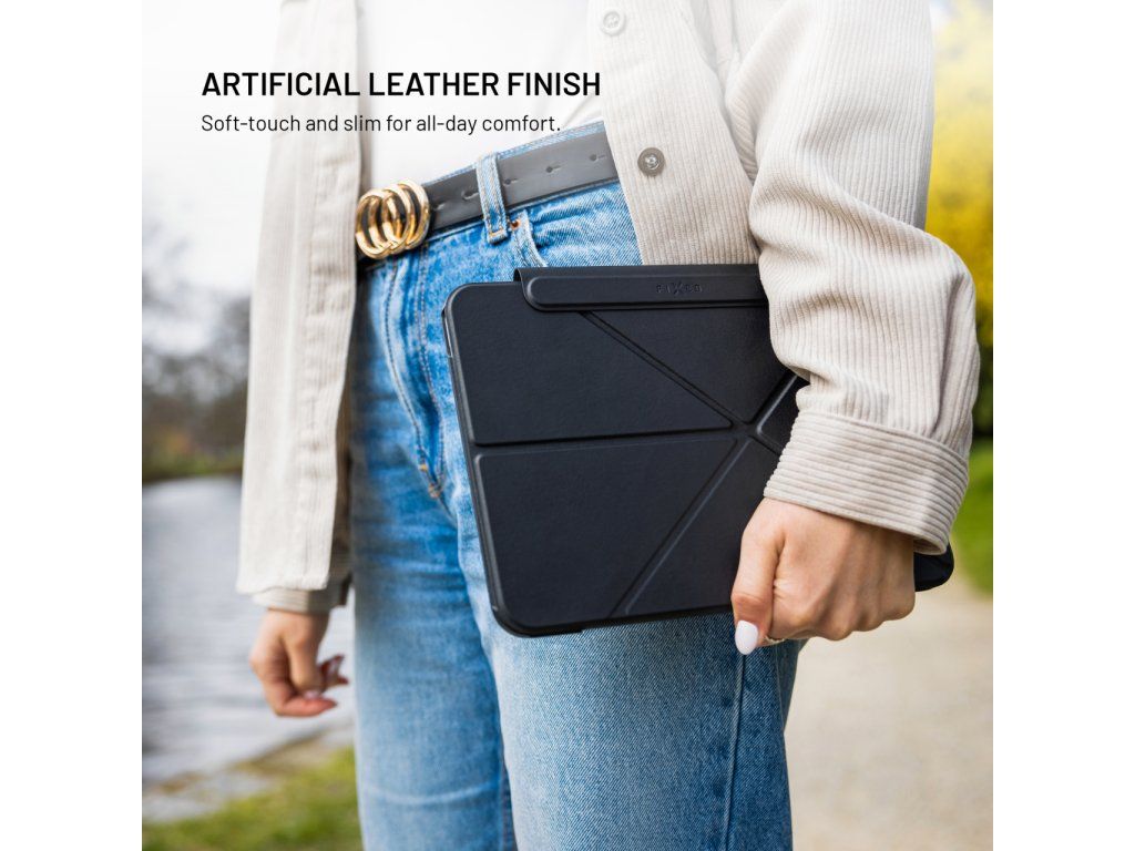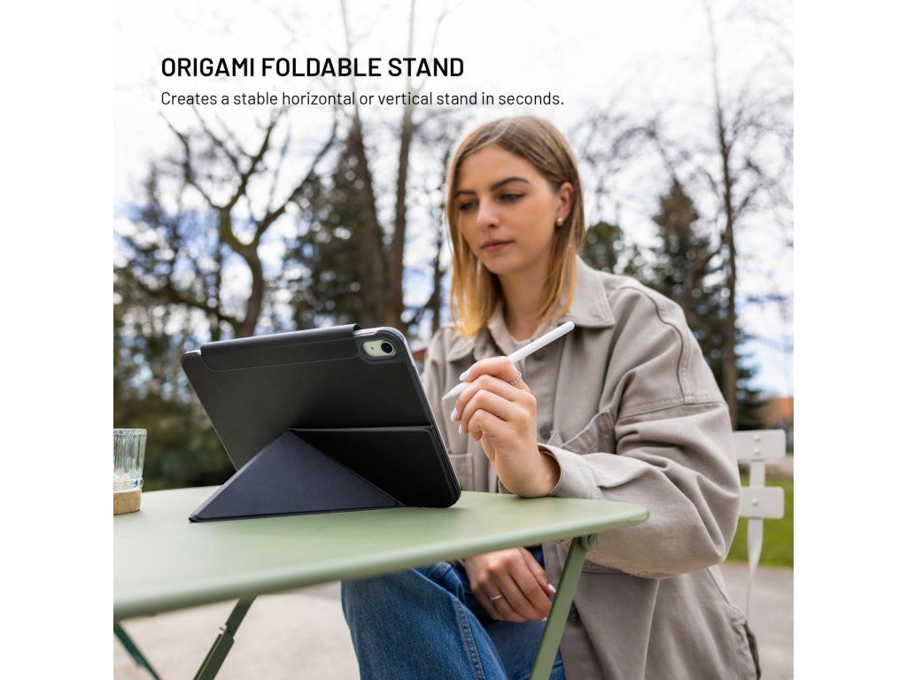 Elegantní a ultratenké pouzdro na tablet FIXED Trinity Case kompletně ochrání vložený tablet a zároveň skvěle vypadá. Desky pouzdra s chytrým origami designem lze ve vteřině proměnit z běžných desek v multifunkční stojánek, který upravíte do horizontální nebo vertikální polohy, ideální pro pohodlné sledování videí, čtení nebo online schůzky. Díky silné magnetické zadní straně tablet perfektně drží na svém místě a zároveň je chráněn ze všech stran – zesílené hrany tlumí nárazy a brání poškrábání. Magnetická přezka zajišťuje bezpečné zavření pouzdra a zároveň poskytuje prostor pro přichycení Apple Pencil. Povrch z jemné umělé kůže dodává prémiový vzhled, je příjemný na dotek a odolá každodennímu používání. Zároveň jeho tenké a lehké provedení nezvětšuje velikost tabletu – snadno se tak vejde do tašky nebo batohu a je ideální na cesty i každodenní přenášení. Díky podpoře funkce Sleep & Wake se po odklopení přední části pouzdra iPad automaticky rozsvítí a stejně tak se vypne při jeho zavření. Skvělá volba pro každého, kdo hledá kombinaci ochrany, stylu a praktičnosti.