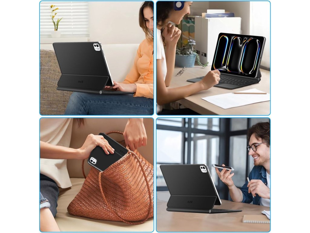 Magnetické pouzdro bezpečně drží iPad na místě a umožňuje vám jej umístit do perfektního úhlu – ať už pro psaní, sledování filmů nebo videohovory. Výřezy pro fotoaparát a porty vám umožní plně využívat funkce zařízení, aniž byste museli pouzdro sundávat.