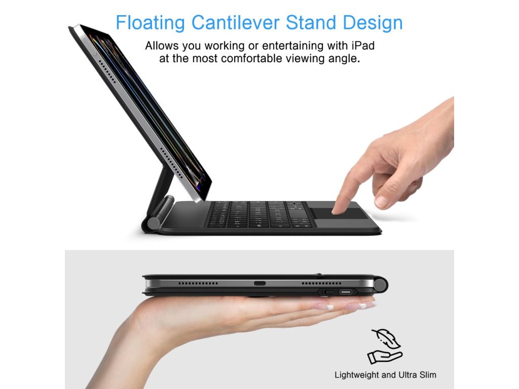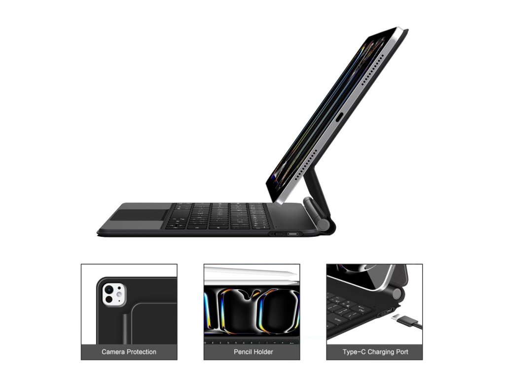 Součástí balení je podsvícená Bluetooth klávesnice s pohodlným rozložením ve stylu notebooku a přesným touchpadem, takže můžete psát, procházet web a interagovat s aplikacemi, aniž byste se museli dotýkat obrazovky. Vestavěné systémové zkratky zrychlují pracovní postupy a klávesnice se snadno připojuje a používá.