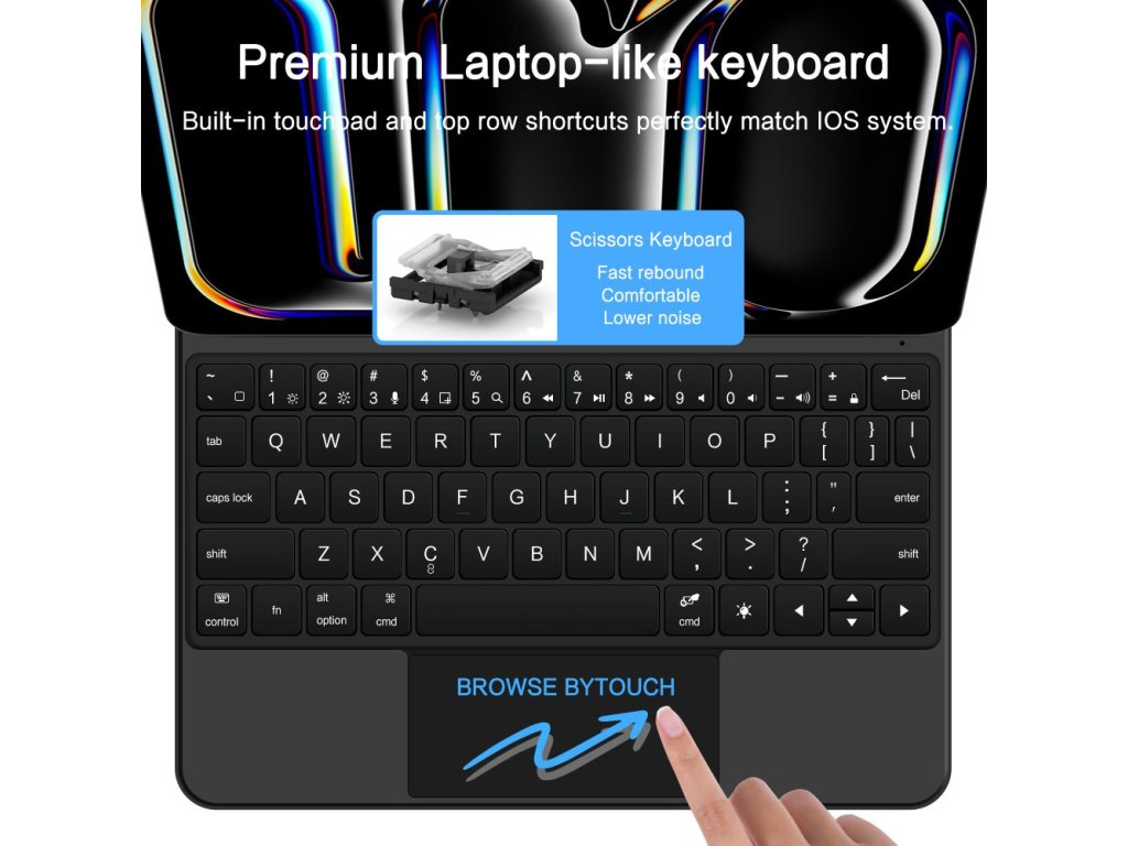 Součástí balení je podsvícená Bluetooth klávesnice s pohodlným rozložením ve stylu notebooku a přesným touchpadem, takže můžete psát, procházet web a interagovat s aplikacemi, aniž byste se museli dotýkat obrazovky. Vestavěné systémové zkratky zrychlují pracovní postupy a klávesnice se snadno připojuje a používá.