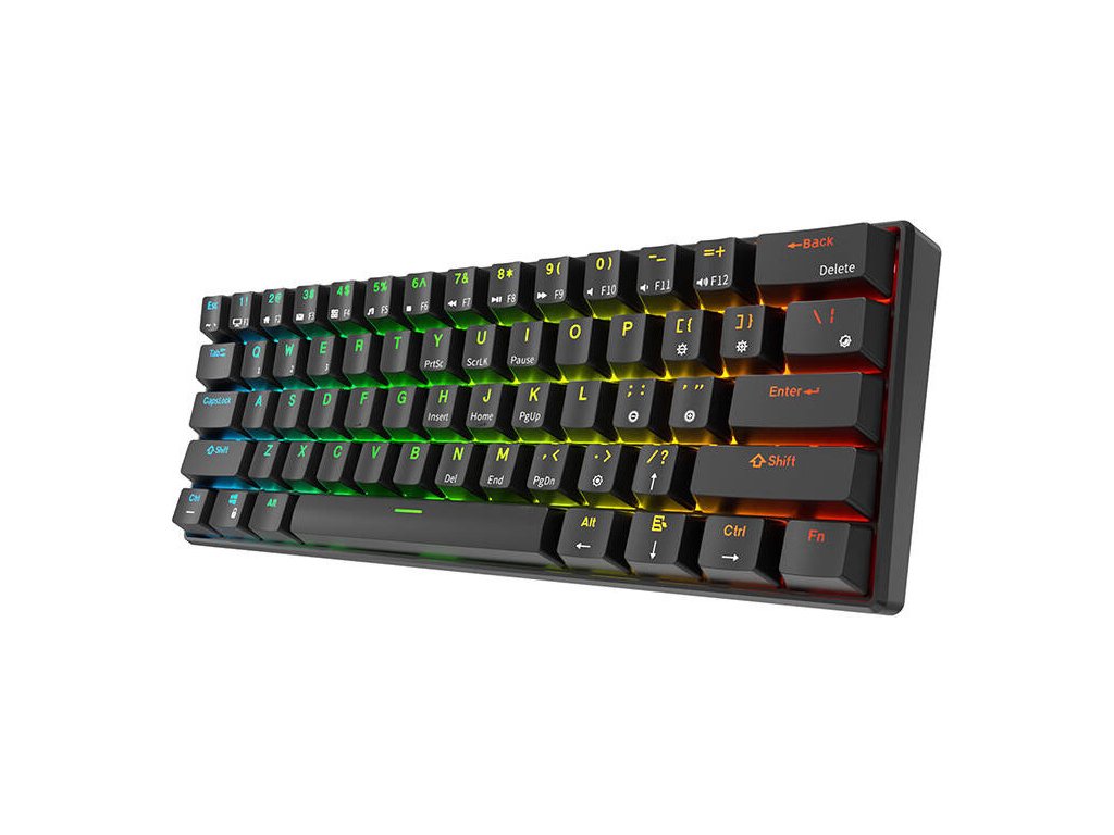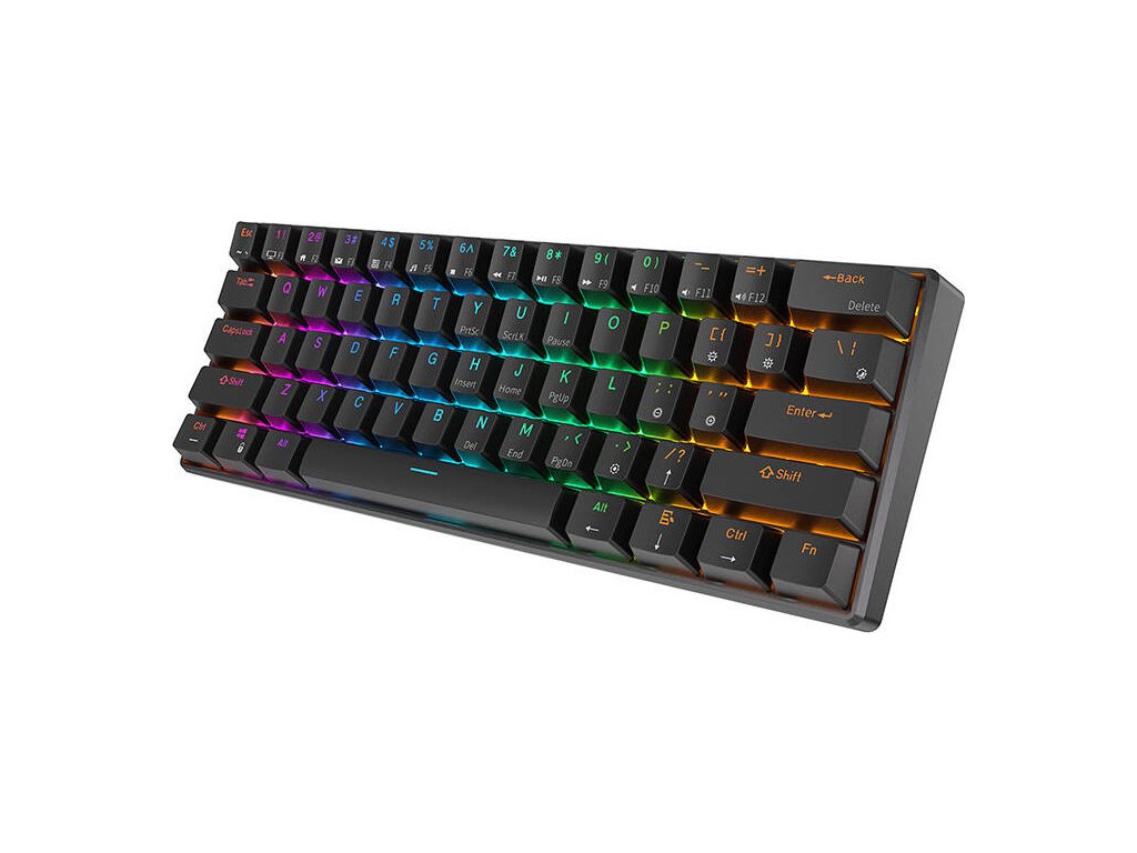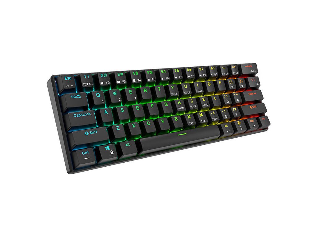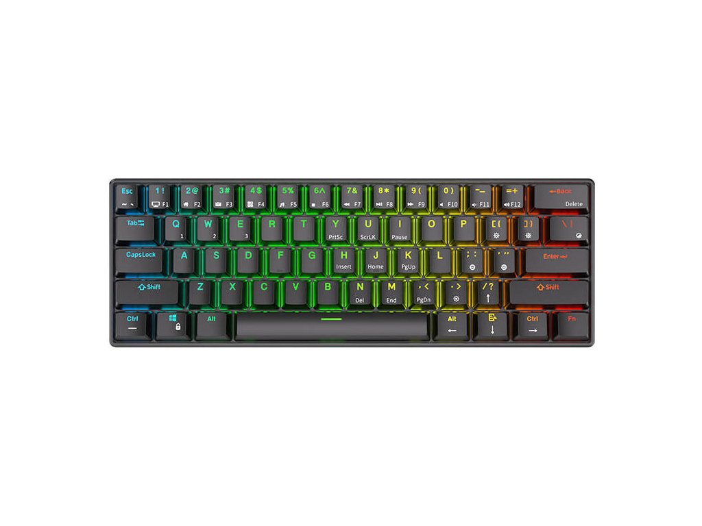 Klávesnice Royal Kludge RK61 dokonale zapadne do vaší herní sestavy! Je vybavena barevným RGB podsvícením se 14 různými režimy osvětlení. Díky tomu si ji můžete přizpůsobit podle svých preferencí a vytvořit tak jedinečné světelné efekty při práci nebo hraní her. Díky svému kompaktnímu provedení se vejde na každý stůl, takže vám zbude více prostoru pro vaše projekty.