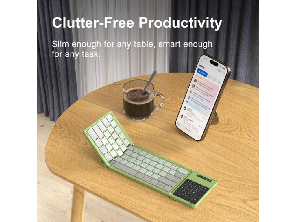 Cube Pocket je skládací Bluetooth klávesnice navržená pro maximální mobilitu a pohodlné psaní kdekoliv. Díky praktickému trojskládacímu designu ji snadno uložíte do batohu, tašky nebo větší kapsy. Po rozložení nabídne plnohodnotné rozložení kláves, numerický blok i integrovaný touchpad pro efektivní práci na telefonu, tabletu nebo notebooku.