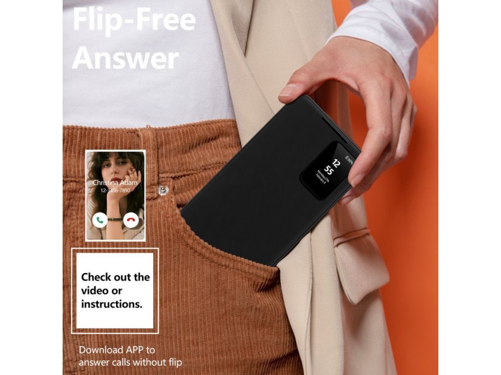 Díky praktickému okénku na přední klopě má uživatel rychlý přístup k času, datu a oznámením, aniž by musel pouzdro otevírat. Přesné výřezy umožňují snadný přístup k tlačítkům, portům a fotoaparátu. Tenký design pouzdra perfektně padne do ruky a telefonu výrazně nepřidává na objemu, což z něj činí vynikající volbu pro každodenní používání.