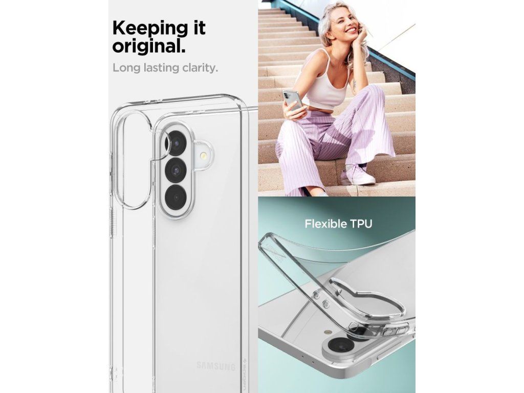 Pouzdro Spigen Liquid Crystal v provedení Crystal Clear je minimalistické, průhledné řešení navržené tak, aby zdůraznilo originální vzhled vašeho Samsungu Galaxy A37 5G a zároveň mu poskytlo spolehlivou každodenní ochranu. Díky své tenké a lehké konstrukci téměř nezvětšuje rozměry zařízení.