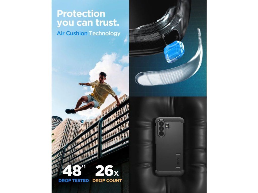 Spigen Tough Armor představuje špičku v ochraně mobilních telefonů. Tento obrněný hybridní kryt kombinuje extrémní odolnost s promyšlenou funkčností. Díky dvouvrstvé konstrukci z polykarbonátu a flexibilního TPU, doplněné o technologii Air Cushion, poskytuje vašemu Samsungu maximální bezpečí při pádech i nárazech.