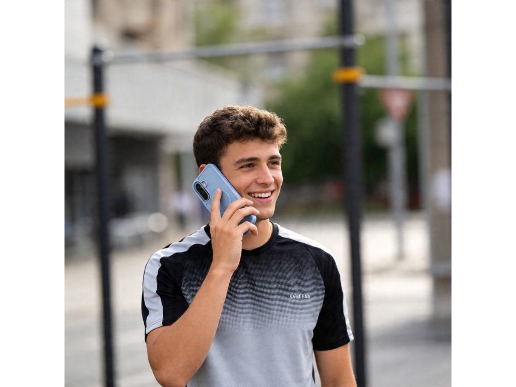 Kryt kombinuje pružný polyuretanový rám (TPU), který skvěle absorbuje nárazy, s pevnou polykarbonátovou zadní částí. Tato kombinace vytváří štít proti mechanickému poškození, zatímco matná ledově modrá barva podtrhuje moderní vzhled vašeho zařízení. Díky vyvýšeným okrajům kolem fotoaparátu a displeje jsou tyto citlivé části chráněny i při položení na rovný povrch.