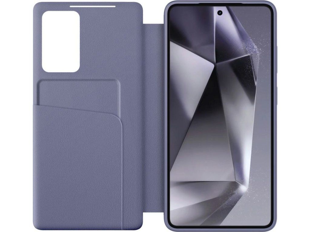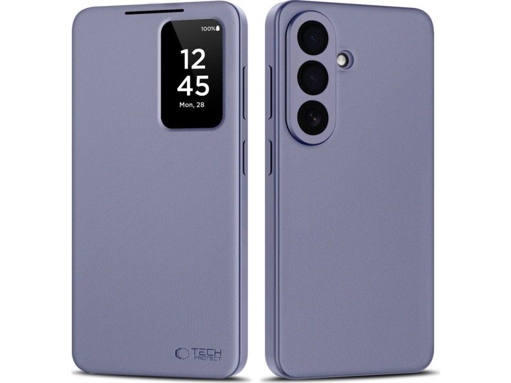 Elegantní fialové pouzdro Tech-Protect Smart Wallet pro Samsung Galaxy A57 5G nabízí praktickou funkci peněženky a chytrého okénka pro notifikace bez otevírání krytu.