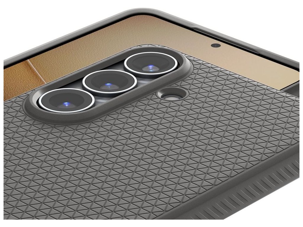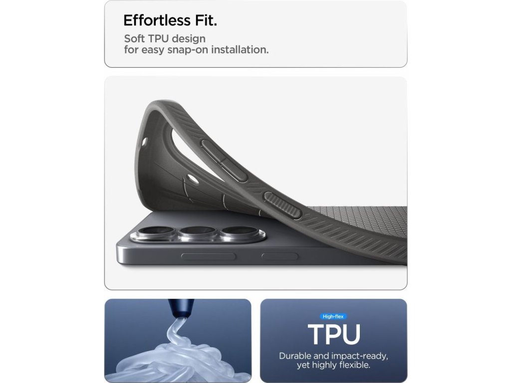 Spigen Liquid Air je tenký kryt vyrobený výhradně z odolného TPU, který kombinuje minimalistický design se spolehlivou ochranou. Matný, texturovaný povrch poskytuje bezpečný, protiskluzový úchop a příjemný dotek, čímž eliminuje riziko vyklouznutí telefonu z ruky při každodenním používání. Charakteristický geometrický vzor dodává krytu moderní vzhled, který ho odlišuje od standardních hladkých krytů.