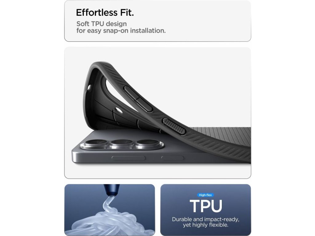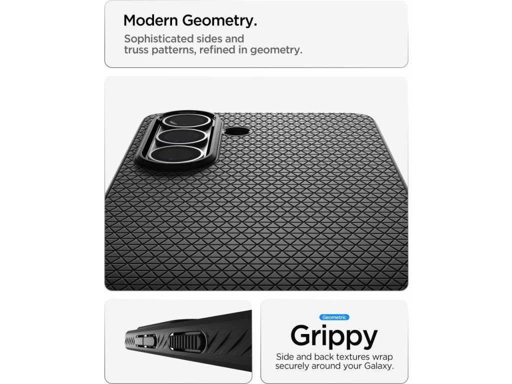 Spigen Liquid Air je tenký kryt vyrobený výhradně z odolného TPU, který kombinuje minimalistický design se spolehlivou ochranou. Matný, texturovaný povrch poskytuje bezpečný, protiskluzový úchop a příjemný dotek, čímž eliminuje riziko vyklouznutí telefonu z ruky při každodenním používání. Charakteristický geometrický vzor dodává krytu moderní vzhled, který ho odlišuje od standardních hladkých krytů.