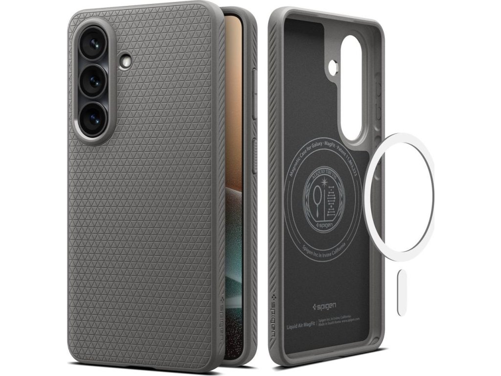 Spigen Liquid Air Mag je tenké pouzdro s vestavěnými magnety MagSafe, které kombinuje minimalistický design se spolehlivou ochranou. Jeho matný, texturovaný povrch s výrazným geometrickým vzorem poskytuje bezpečný a protiskluzový úchop a dodává pouzdru moderní vzhled, který ho odlišuje od standardních hladkých pouzder.