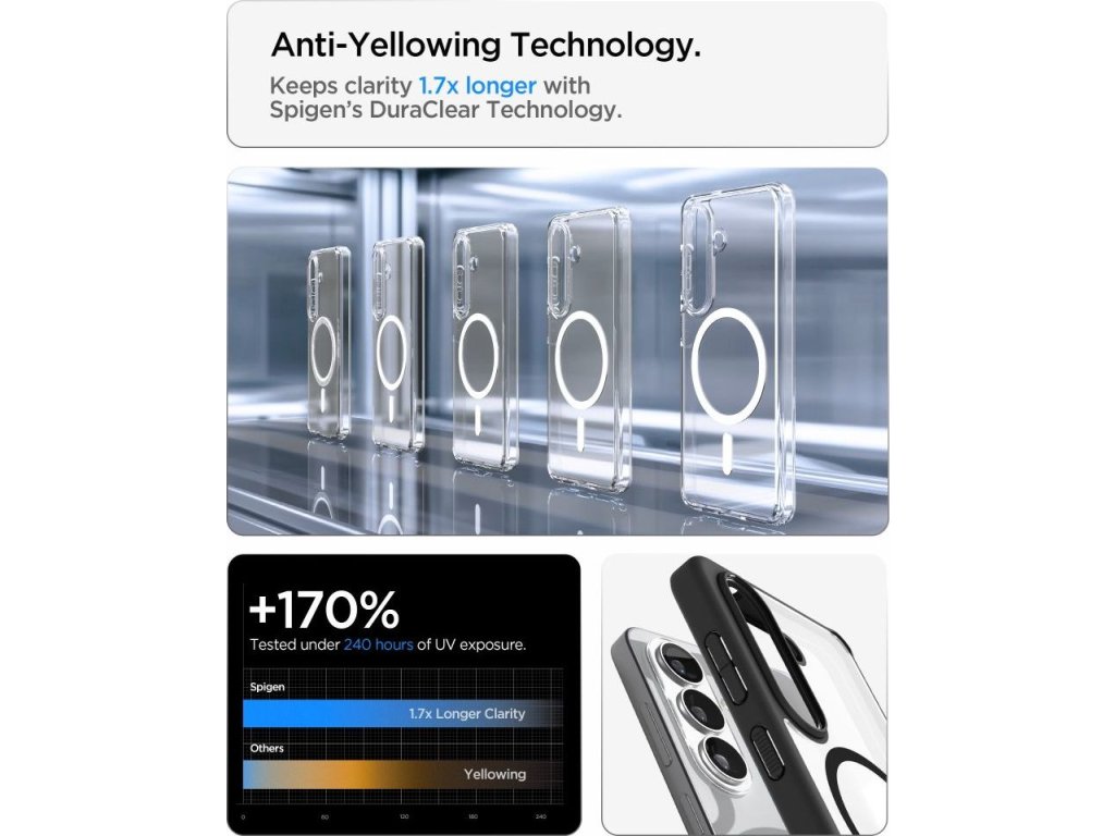 Kryt Spigen Ultra Hybrid Mag MagSafe je dokonalou kombinací estetiky, funkčnosti a moderní magnetické technologie. Jeho hybridní design poskytuje spolehlivou ochranu a zároveň nabízí plnou kompatibilitu s příslušenstvím MagSafe a zachovává původní design smartphonu.