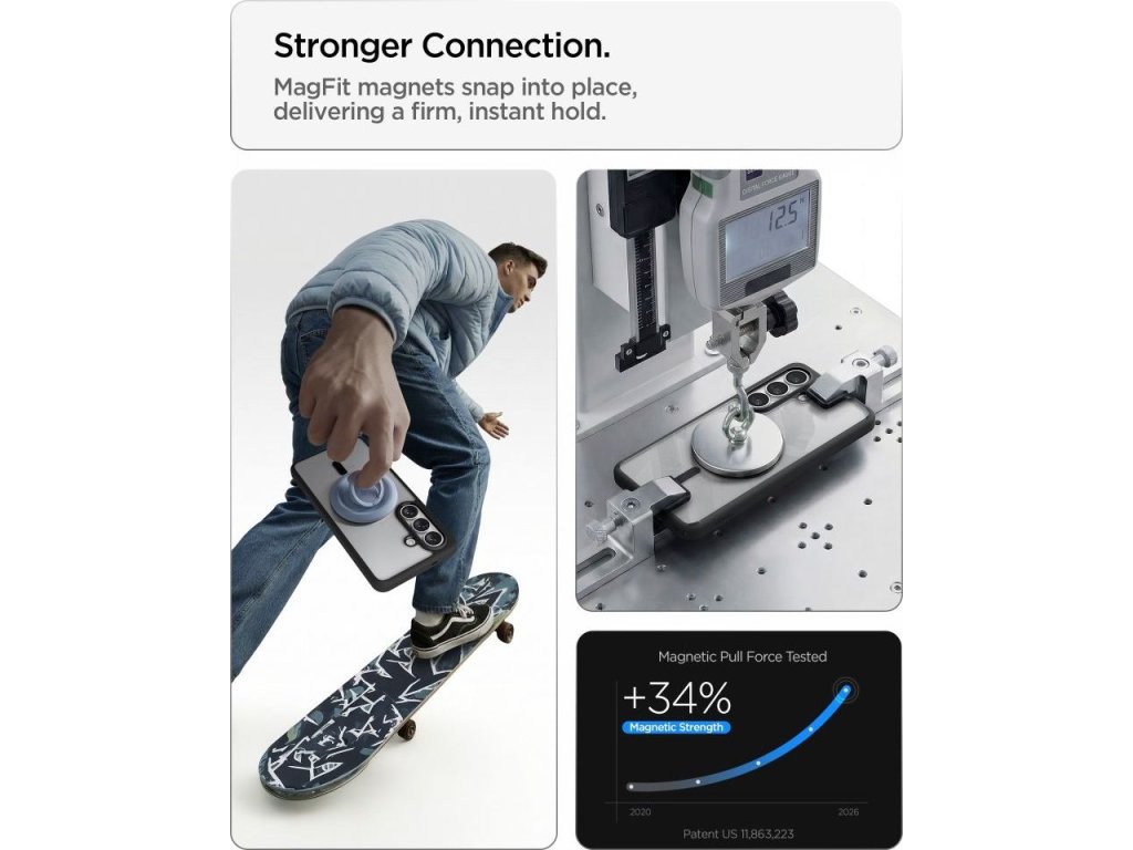 Vestavěný magnetický kroužek kompatibilní s MagSafe umožňuje bezdrátové nabíjení bez nutnosti sundávání pouzdra a stabilní připojení k magnetickému příslušenství. Můžete používat držáky MagSafe, peněženky, powerbanky a další příslušenství a zároveň si zachovat plnou funkčnost a pohodlí.