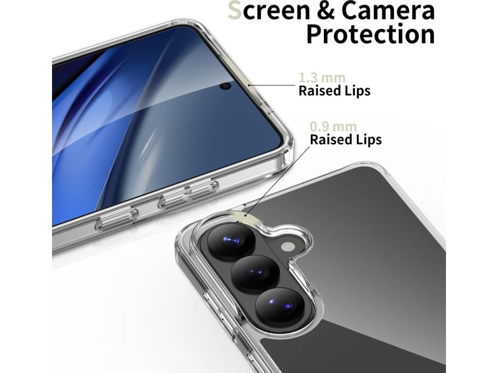 Pouzdro perfektně padne na zařízení a poskytuje plný přístup ke všem externím portům a funkcím. Dvouvrstvá struktura účinně absorbuje energii nárazu, čímž snižuje riziko poškození telefonu při pádu. Zvýšené okraje kolem obrazovky a ostrůvku fotoaparátu chrání displej a čočky před kontaktem s rovnými povrchy.