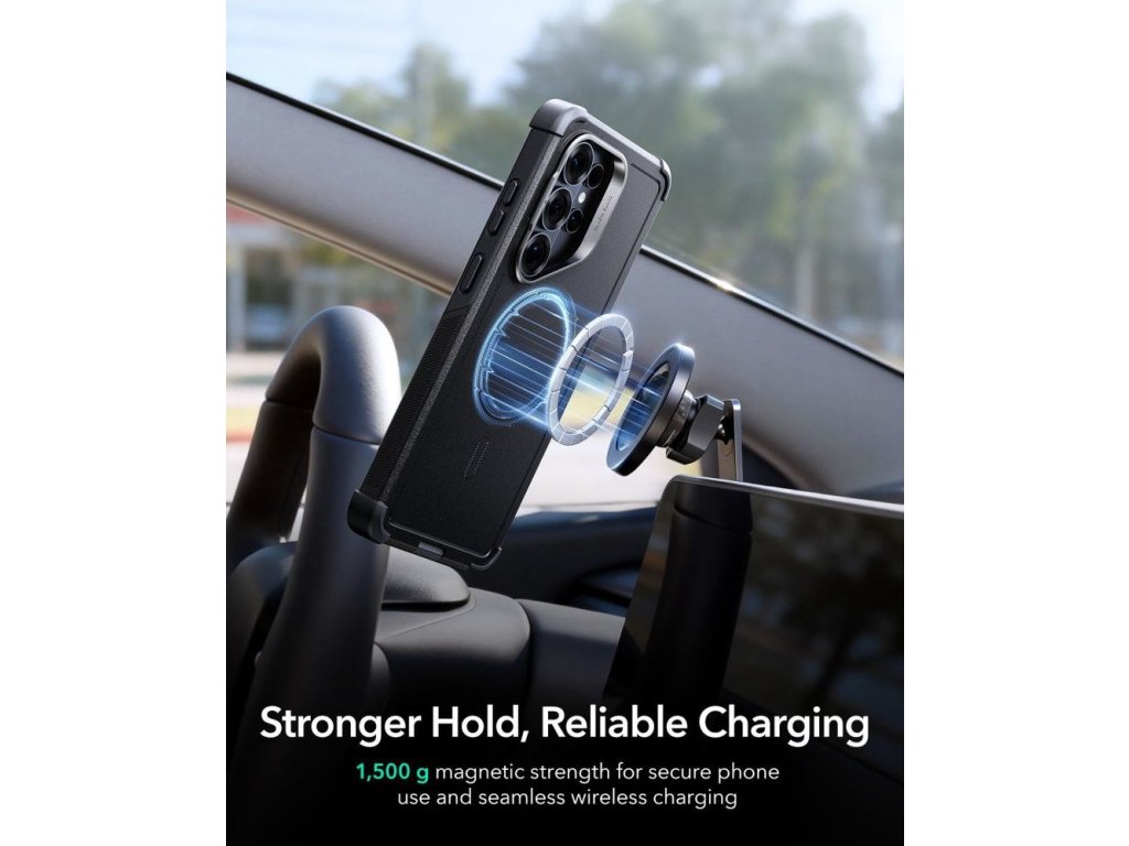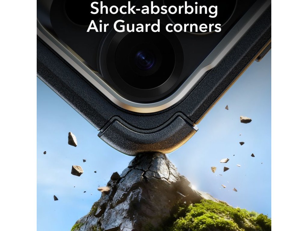 Stojan ESR Cyber Tough Kickstand MagSafe kombinuje maximální ochranu s moderním designem. Jeho pokročilá třívrstvá struktura se skládá z nárazuvzdorné podšívky Poron, flexibilní vrstvy TPU a pevné PC skořepiny, které společně vytvářejí ochranný systém splňující standardy vojenské úrovně. Strategicky umístěné rohy Air Guard absorbují energii nárazu a navzdory pokročilému designu si pouzdro zachovává štíhlý profil a nízkou hmotnost.
