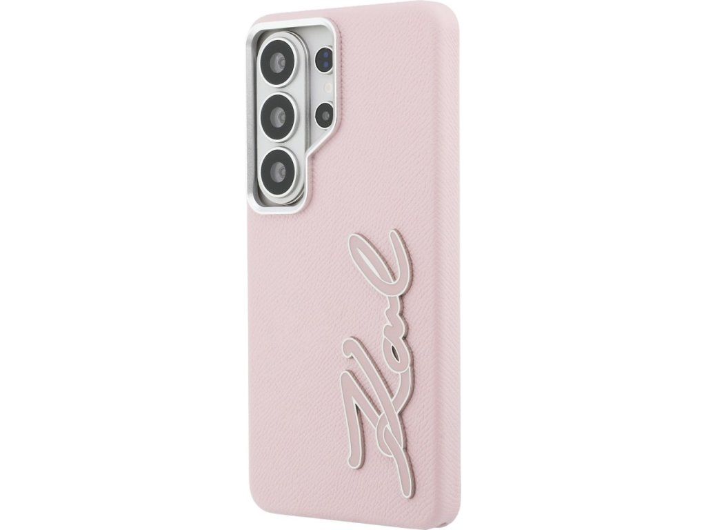 Karl Lagerfeld Grained Signature Metal Resin Logo kryt pro Samsung Galaxy S26 Ultra růžový