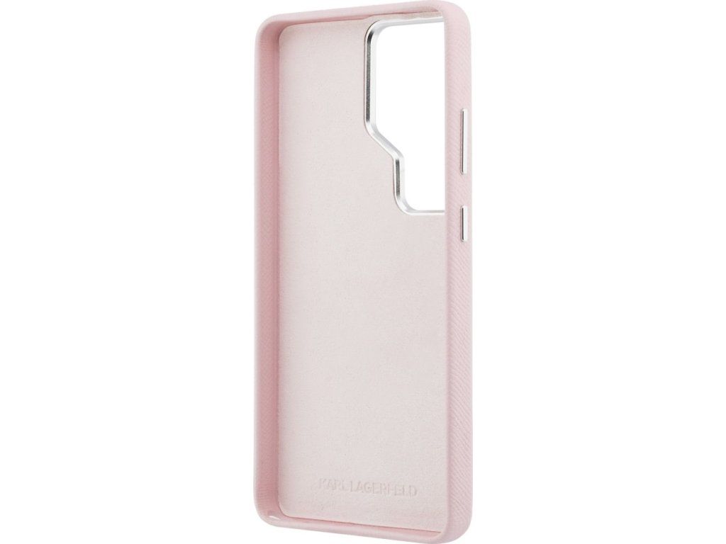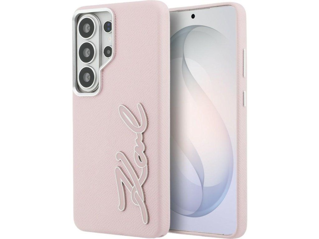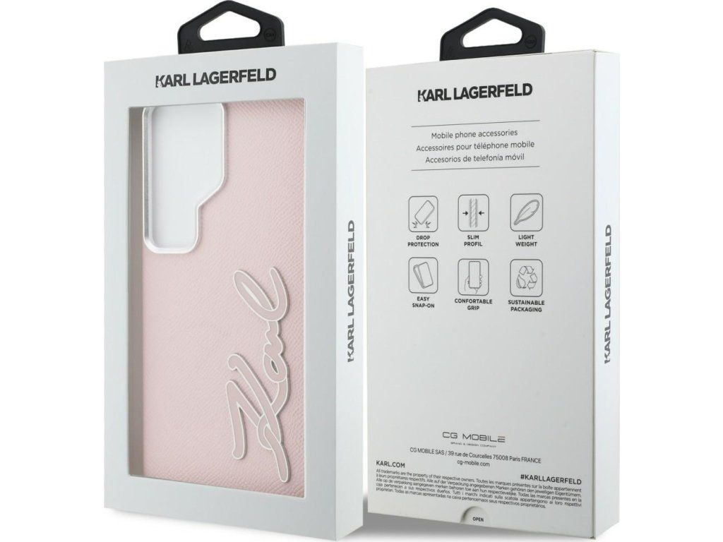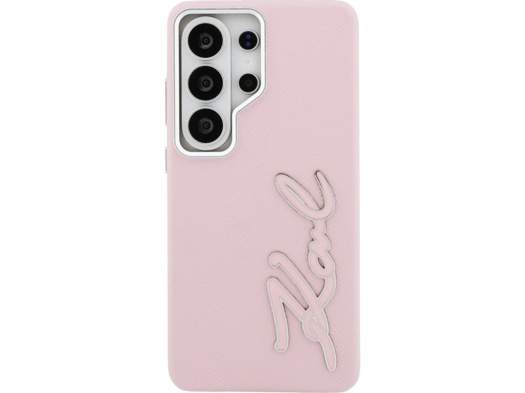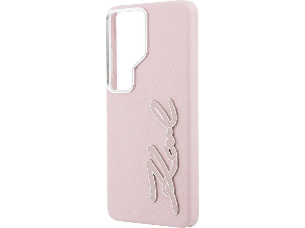 1× Karl Lagerfeld Grained Signature Metal Resin Logo kryt pro Samsung Galaxy S26 Ultra růžový