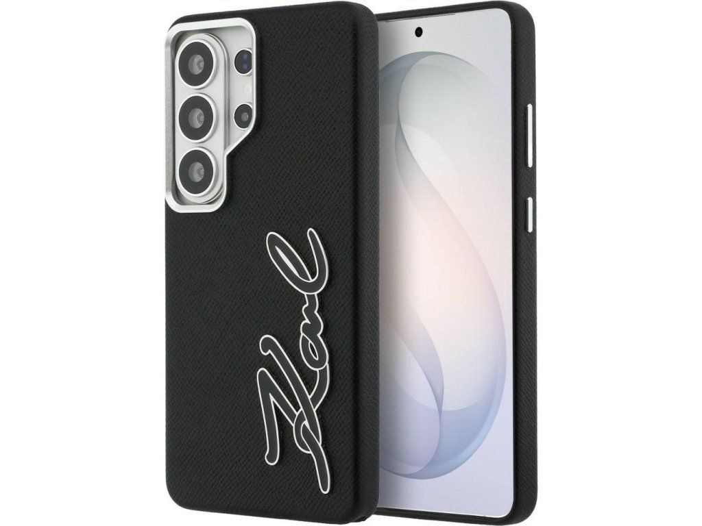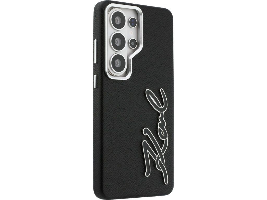 Karl Lagerfeld kryt Grained Signature Metal Resin Logo pro Samsung Galaxy S26 Ultra black
