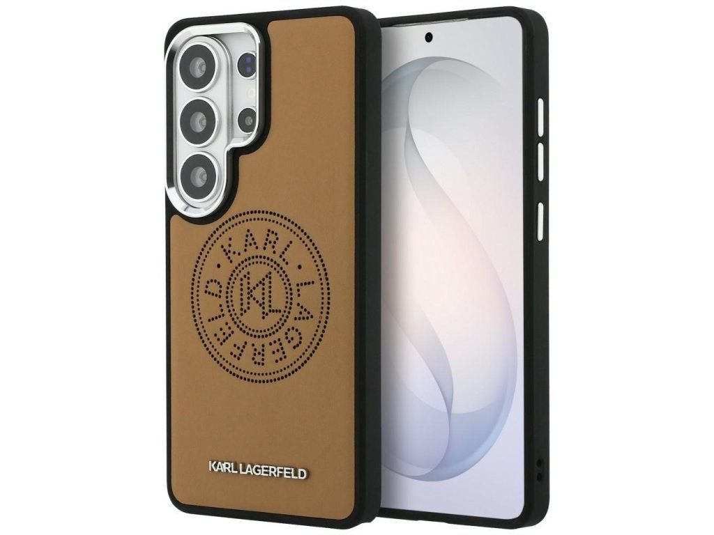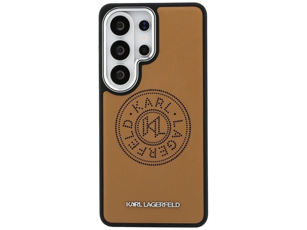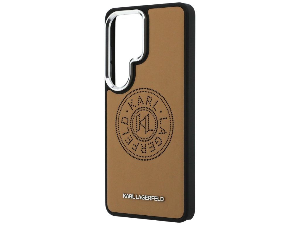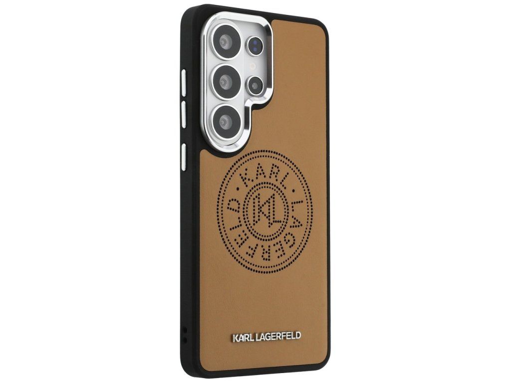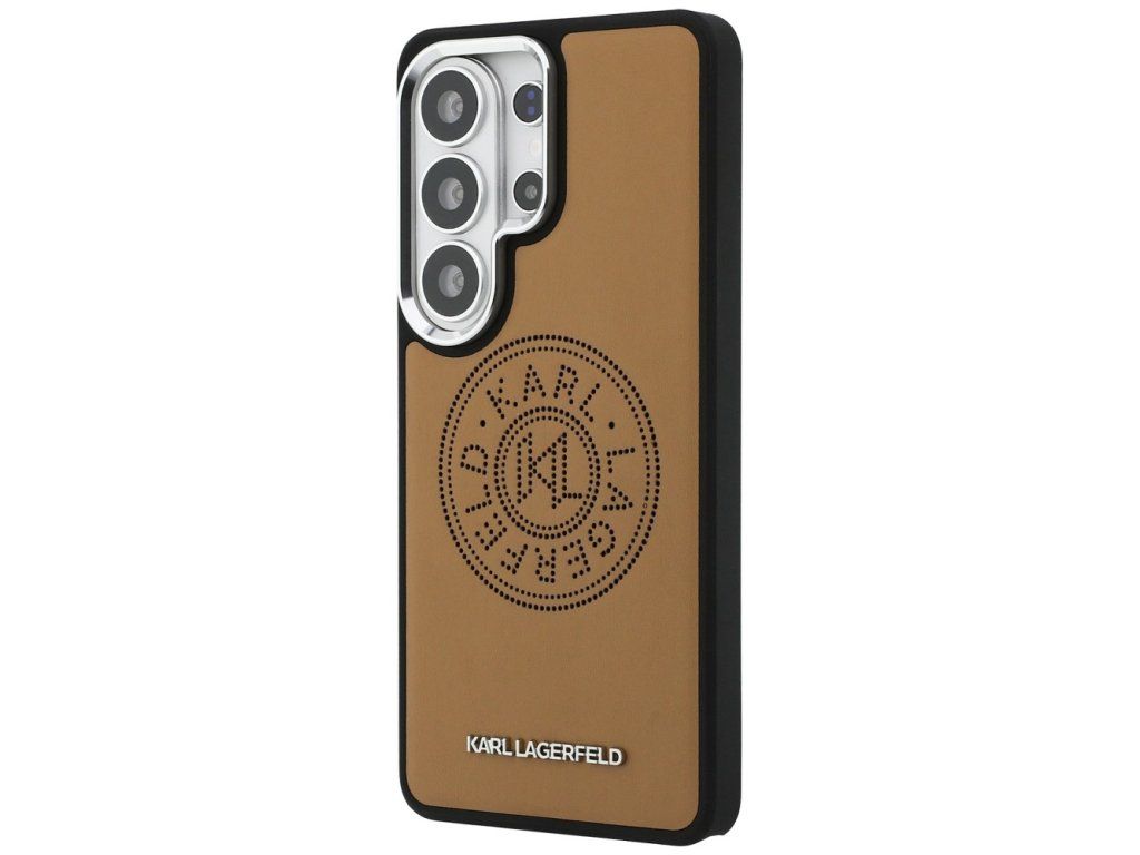 Stylový hnědý kryt Karl Lagerfeld Perforated KL s MagSafe zajistí ochranu a luxusní vzhled pro Samsung Galaxy S26 Ultra. Ideální volba pro eleganci a moderní nabíjení.