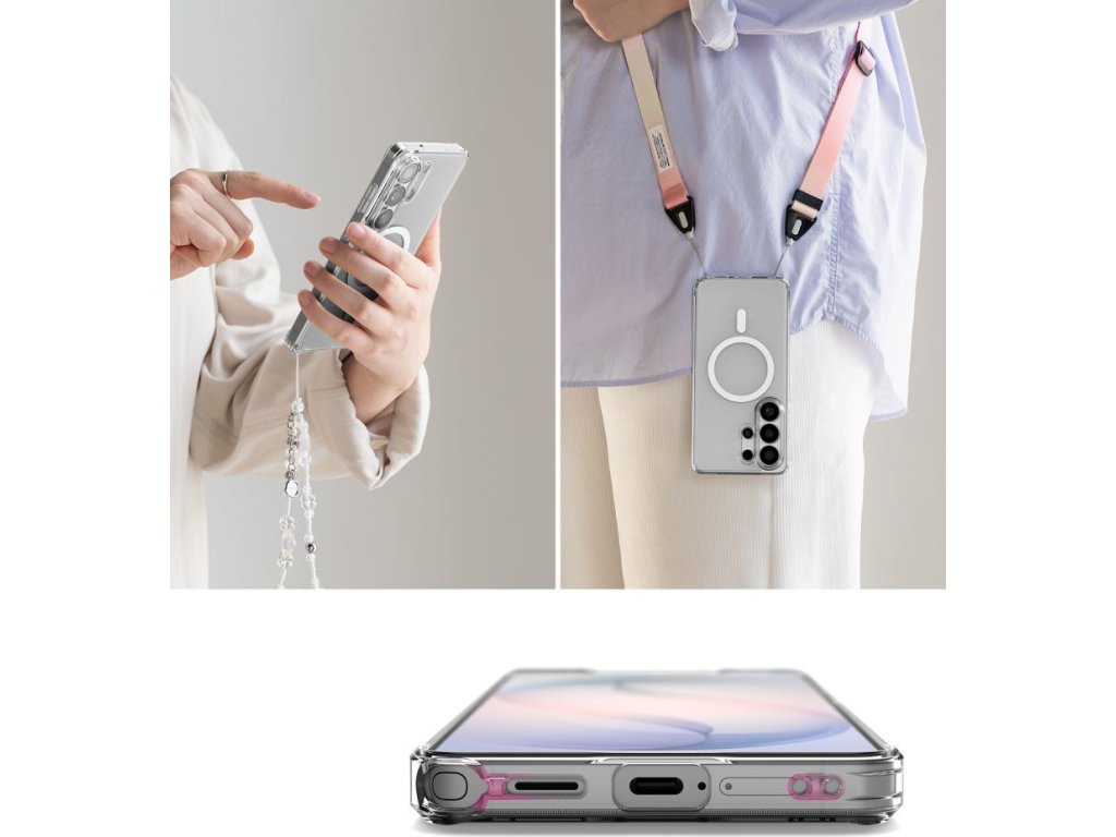 Ringke Fusion Magnetic MagSafe je hybridní pouzdro, které kombinuje robustní ochranu s funkcí MagSafe. Vyrobeno z flexibilního polykarbonátu vyztuženého nárazuvzdorným TPU, poskytuje účinnou ochranu proti pádům a poškrábání. Vestavěný magnetický kroužek umožňuje stabilní uchycení příslušenství MagSafe a rychlé bezdrátové nabíjení. Průhledná zadní strana umožňuje zachovat původní vzhled telefonu a zároveň jej chrání před každodenním poškozením.