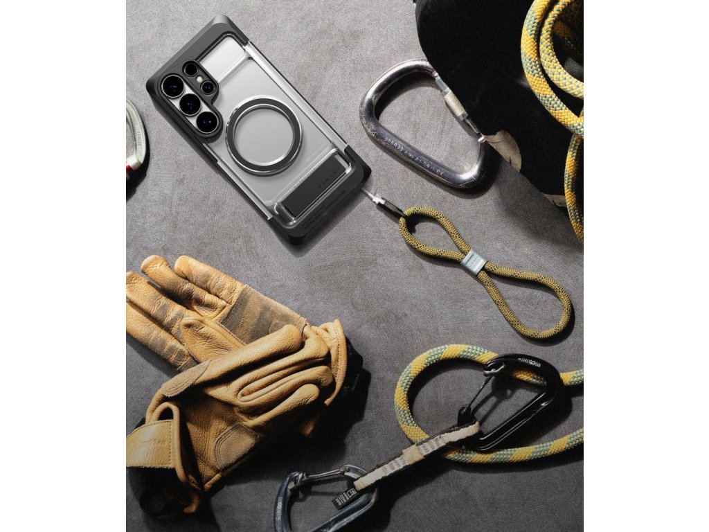 Vestavěný magnetický kroužek kompatibilní s MagSafe umožňuje bezdrátové nabíjení a bezpečné uchycení magnetického příslušenství. Vestavěný stojánek slouží jako praktický stojan, který umožňuje umístit telefon do dvou poloh: vodorovně pro sledování obsahu a svisle pro videohovory. Robustní konstrukce zajišťuje stabilitu a odolnost při každodenním používání.