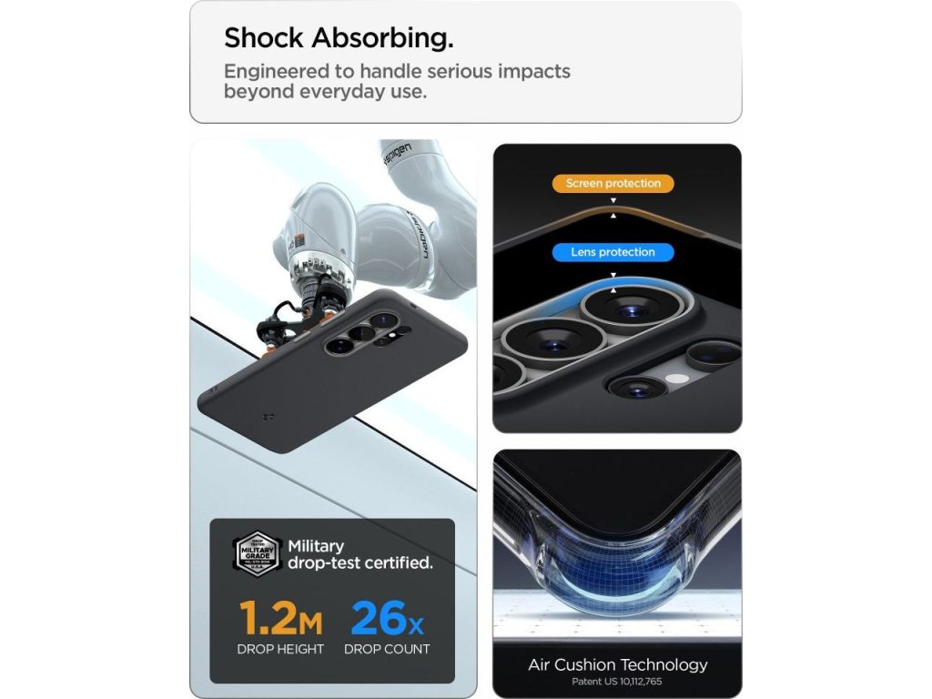 Výrobce do rohů zakomponoval technologii Air Cushion, která vytváří vzduchové mezery, jež dále tlumí nárazy a chrání zařízení v případě pádu. Barevný rámeček kolem fotoaparátu zvedá objektiv nad povrch, čímž poskytuje ochranu před poškrábáním a kontaktem s různými povrchy a zároveň dodává pouzdru osobitý a stylový vzhled. Matný povrch zajišťuje bezpečný a protiskluzový úchop a lehký a štíhlý design zajišťuje snadné používání pouzdra po celý den.