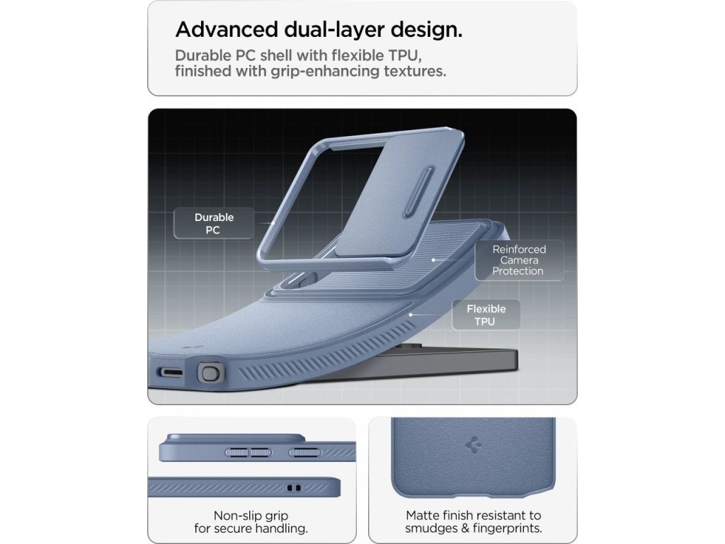 Spigen Optik Armor je hybridní pouzdro, které kombinuje moderní design s pokročilou ochranou. Jeho precizní konstrukce kombinuje flexibilní TPU kryt s odolným polykarbonátovým sliderem a poskytuje tak kompletní ochranu před každodenním poškozením.