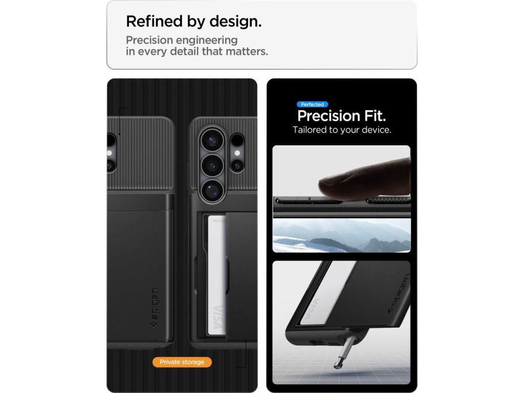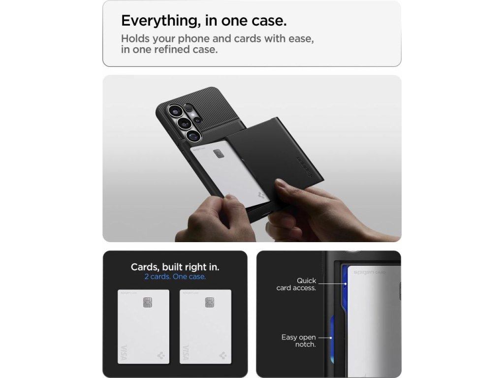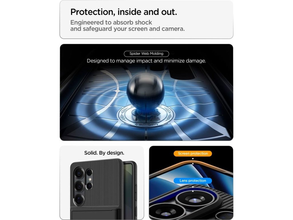 Spigen Slim Armor CS je odolný hybridní kryt, který spojuje vysokou úroveň ochrany s praktickou přihrádkou na karty. Díky kombinaci pevného polykarbonátu a pružného TPU poskytuje telefonu spolehlivou ochranu při každodenním používání i při nečekaných pádech. Přitom si zachovává štíhlý profil, takže zbytečně nezvětšuje rozměry zařízení.