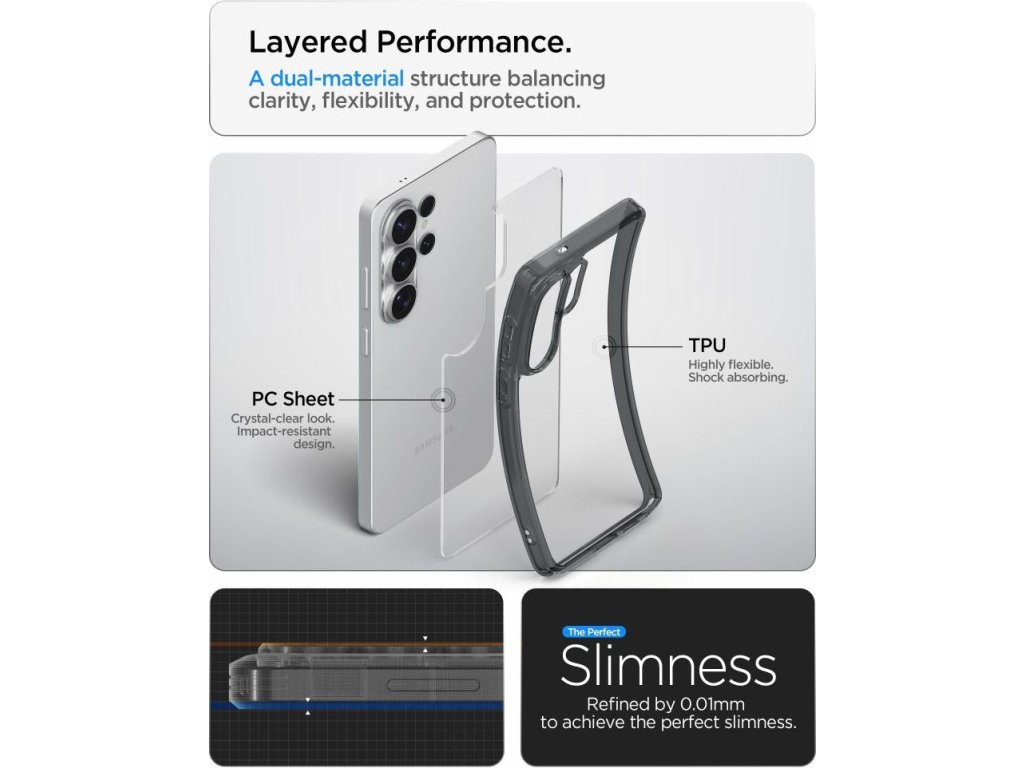 Spigen Ultra Hybrid je dokonalou kombinací estetiky a funkčnosti. Průhledný design zdůrazňuje originální design smartphonu a zároveň nabízí spolehlivou ochranu.