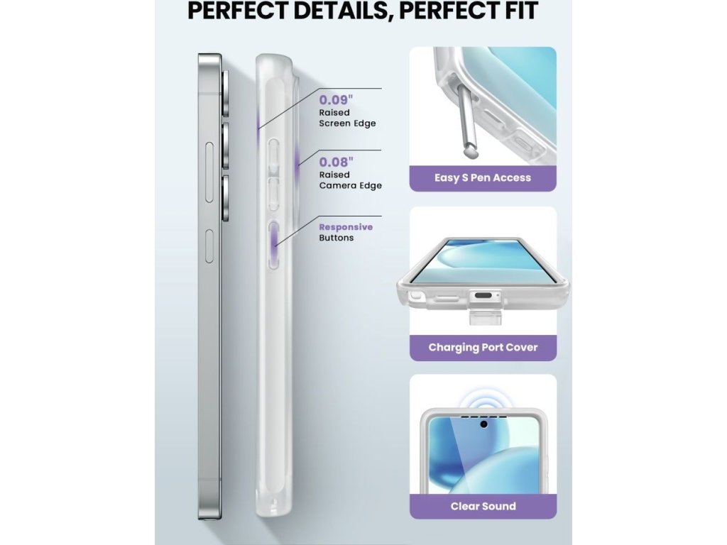 Rohy zesílené vojenskou certifikací obsahují vzduchové komory Air Cushion, které absorbují nárazy při pádu. Vyvýšené rámečky kolem obrazovky a fotoaparátu chrání před poškrábáním. Kryty bočních tlačítek a nabíjecího portu chrání před prachem a vlhkostí a přesné výřezy poskytují plný přístup ke všem funkcím zařízení.
